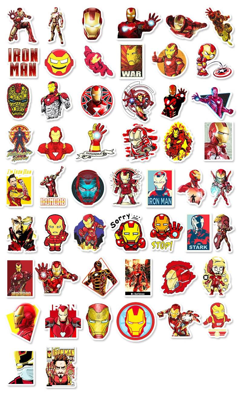 Водостойкие декоративные наклейки Железный человек, 52 шт.