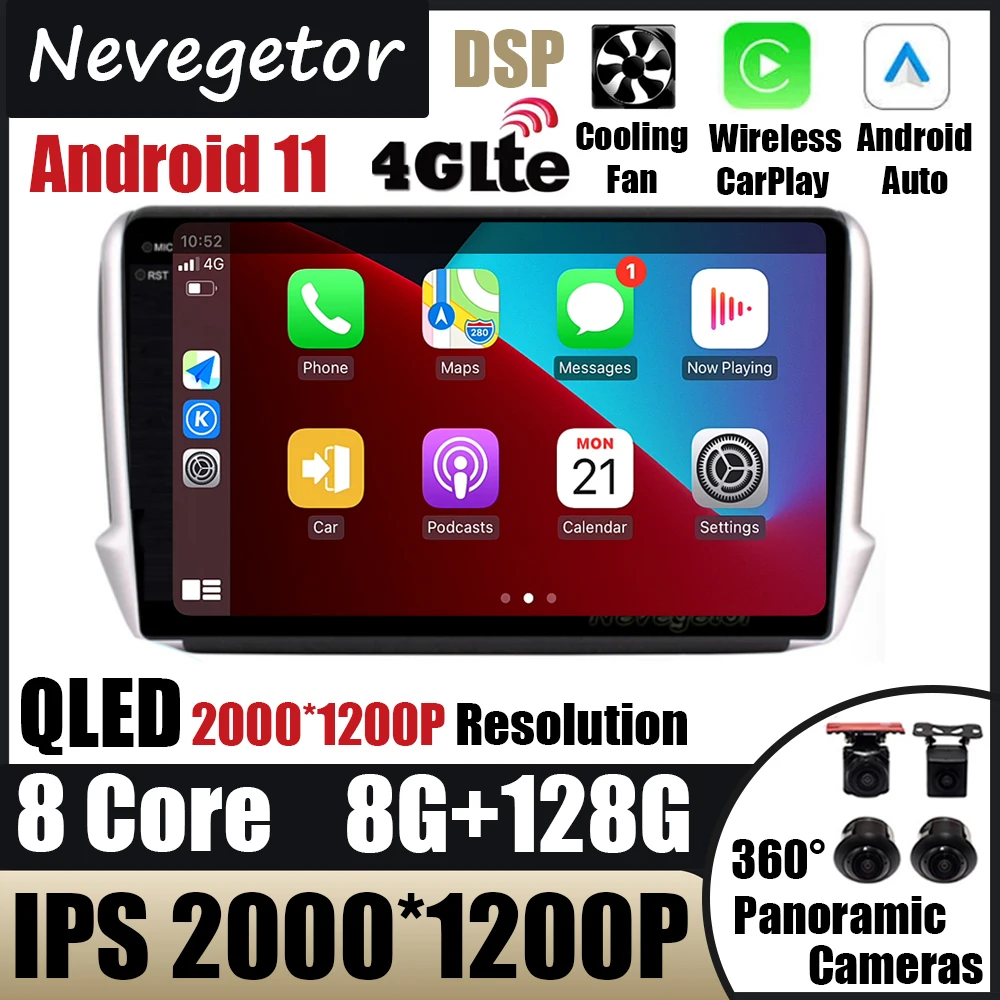Автомобильная стерео-система на Android 11, 8 + 128 ГГц, для Peugeot 2008, 208, 2012-2018, мультимедийная стереосистема, автомобильный GPS-плеер, навигация, GPS-радио, без DVD