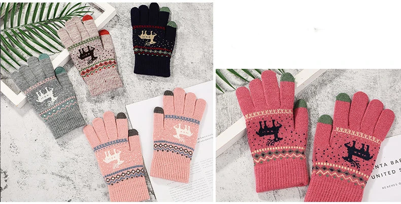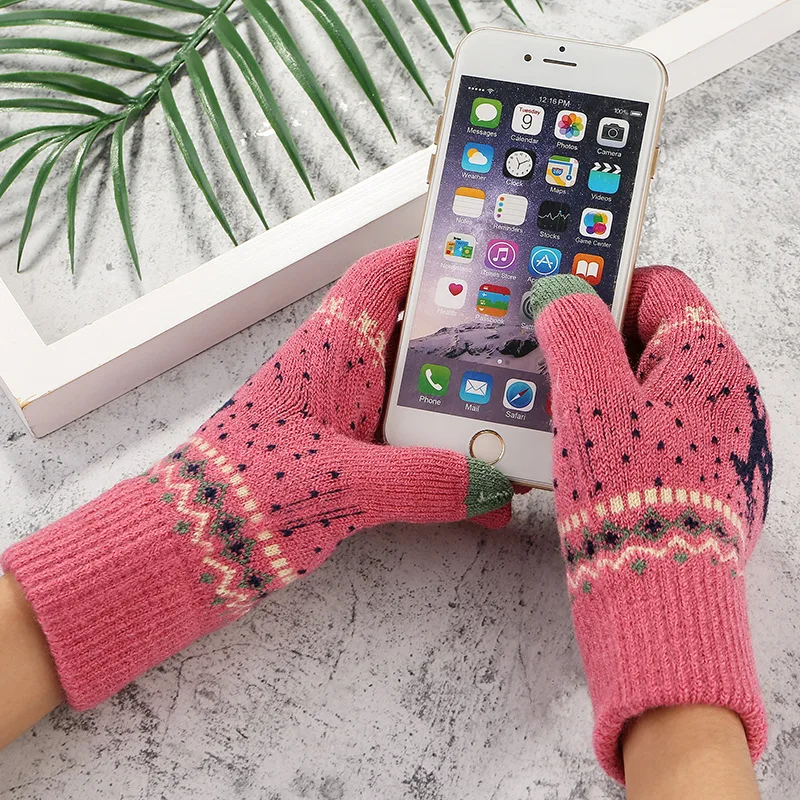 Перчатки с принтом рождественского оленя, трикотажные перчатки для сенсорного экрана, зимние плотные и теплые взрослые перчатки с закрытыми пальцами для мужчин и женщин