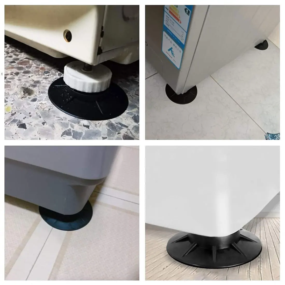 Характеристика: 1. Подходит для стиральных машин всех брендов. 2. Используйте эти высокоэффективные Нескользящие резиновые коврики/демпфирующие диски, чтобы сохранить вибрацию, шум и напольные знаки к минимуму. 3. Применимые полы: мрамор, напольная плитка, деревянные полы, булыжные полы и т. Д.
