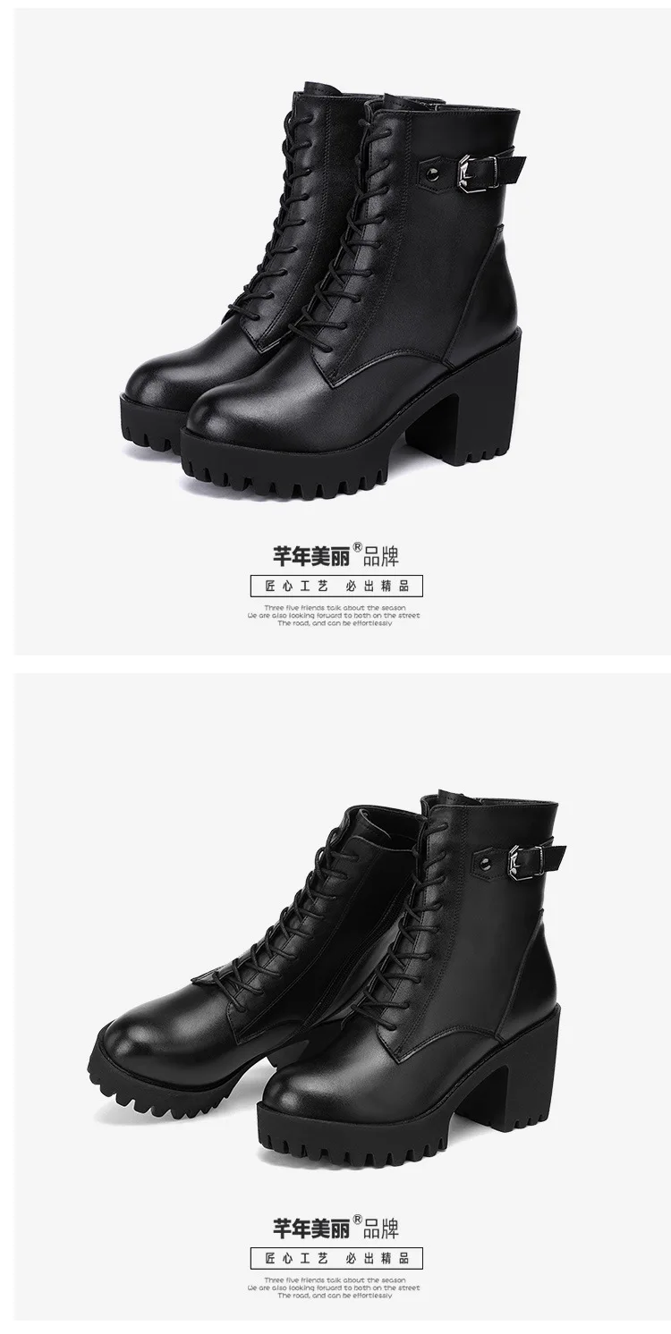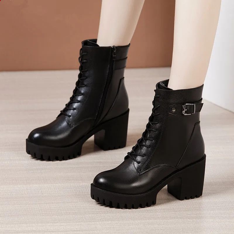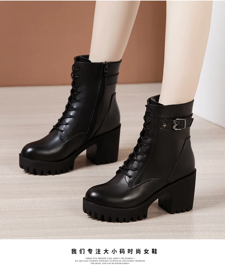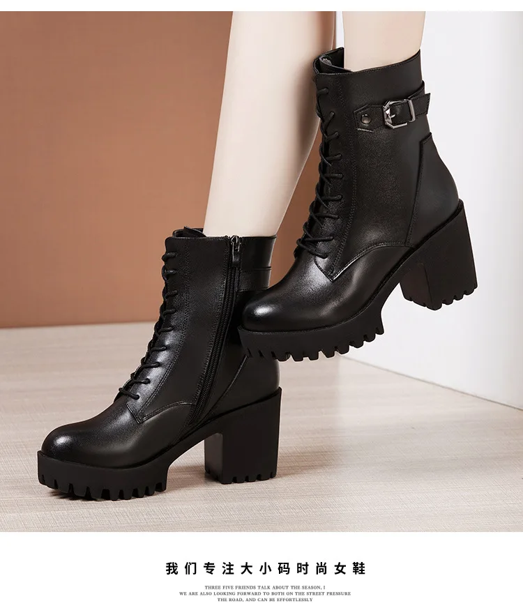Женские ботильоны из натуральной кожи, на платформе и блочном каблуке, с пряжкой и ремешком, офисные Ботинки на высоком каблуке, большой размер 32-43, 2022