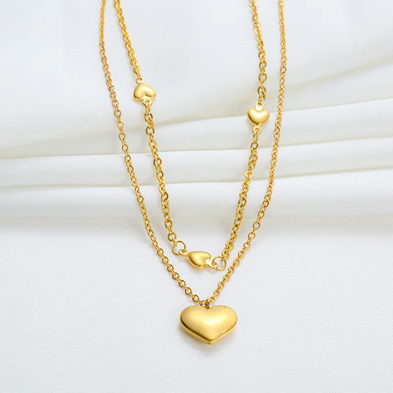 Цепочка-чокер женская из нержавеющей стали 316L, изящное Двухслойное ожерелье с подвесками в виде сердечек для влюбленных