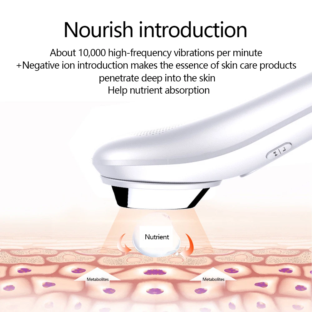 [Удаление старого кератина и грязи] устройство для лица массирует каждую ячейку, обеспечивая 10000 или более тонких вибраций для кожи в секунду. Микровибрация может поднимать и удалять пятна пор и остатки макияжа на коже, которые не могут быть удалены путем обычной очистки. [Увеличение проникновения увлажняющих ингредиентов с высокой молекулярной массой] оборудование для лица может образовывать крошечные промежутки в коже через тонкие вибрации. Временно изменяя структуру кожи (что затрудняет проникание косметических ингредиентов), такие ингредиенты, как гиалуроновая кислота и коллаген, могут проникать глубоко в роговой слой. [Производство коллагена для укрепления кожи] оборудование для лица полностью использует функцию «нагревания до 42 °C и вибрирования кожи». Когда он стимулируется теплом, он может бороться с ультрафиолетовыми лучами на коже, восстанавливать клетки кожи, поврежденные ультрафиолетовыми лучами, увеличивать коллаген и восстанавливать свежую, твердую кожу. [Функция импорта/экспорта ионов] Ультразвуковой косметический инструмент имеет функцию импорта/экспорта ионов с использованием разности потенциалов ионов. Отрицательные ионы могут сделать увлажняющие ингредиенты проникают в роговой слой и предотвращают мелкие морщинки, вызванные сухостью. Напротив, положительные ионы вытягивают грязь на задней части пор. [Решение проблем с кожей] существенно улучшает такие проблемы, как сухие мелкие морщины, провисание, шипы, акне, поры, грубая кожа и сухая кожа внутри