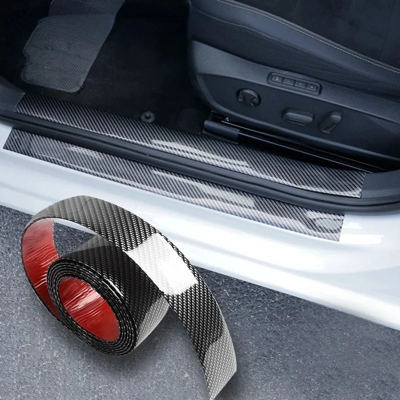 5x100 см Резиновая полоса для защиты порога из углеродного волокна, наклейка 5D, защитная наклейка против царапин, автомобильная пленка, самоклеящаяся