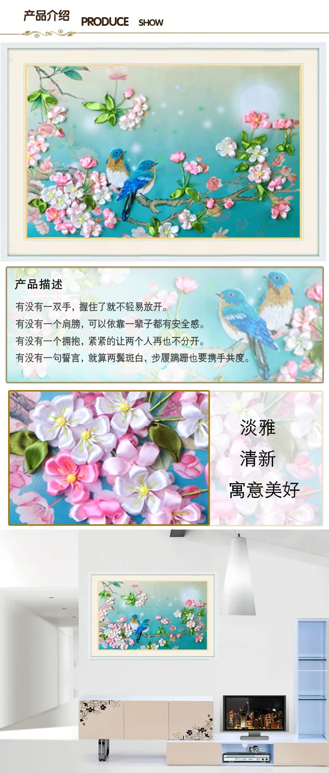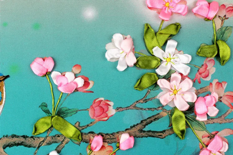 Супер предложения рукоделие, наборы для вышивки крестиком из ленты сделай сам для вышивки, Весенняя синяя птица цветок лента для вышивки крестиком