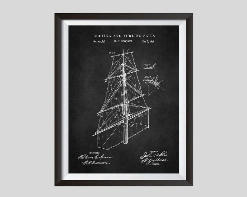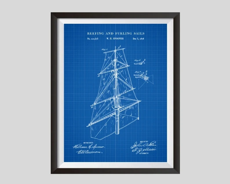 Плакат с парусной тематикой, патентные принты, лодка, парус, оснастка, фотосхема, плакат, настенное художественное украшение, комната, Картина на холсте