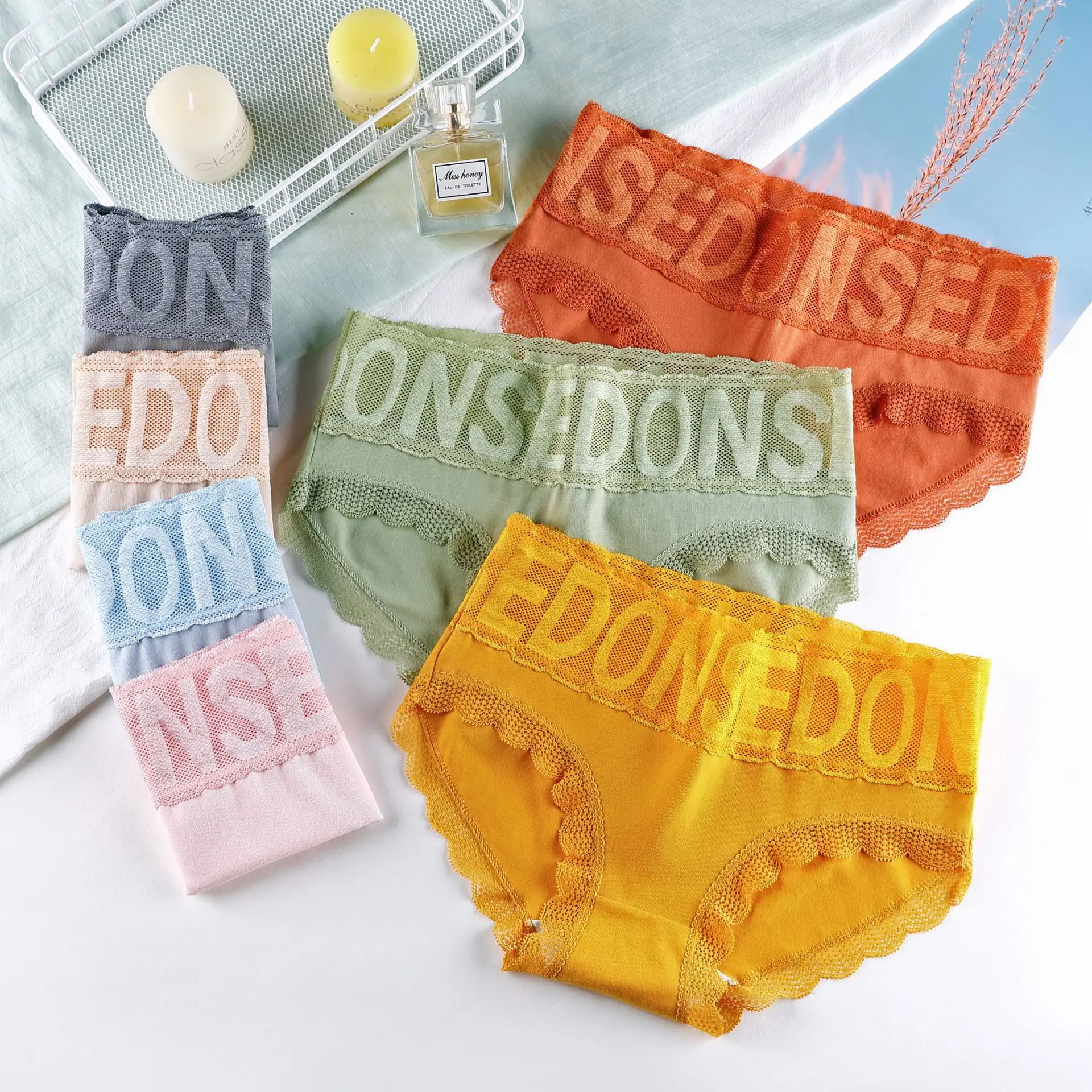 3 шт.компл. женские трусики, женское нижнее белье конфетных цветов со средней талией, дышащие хлопковые трусики, трусики, нижнее белье, кружевное нижнее белье