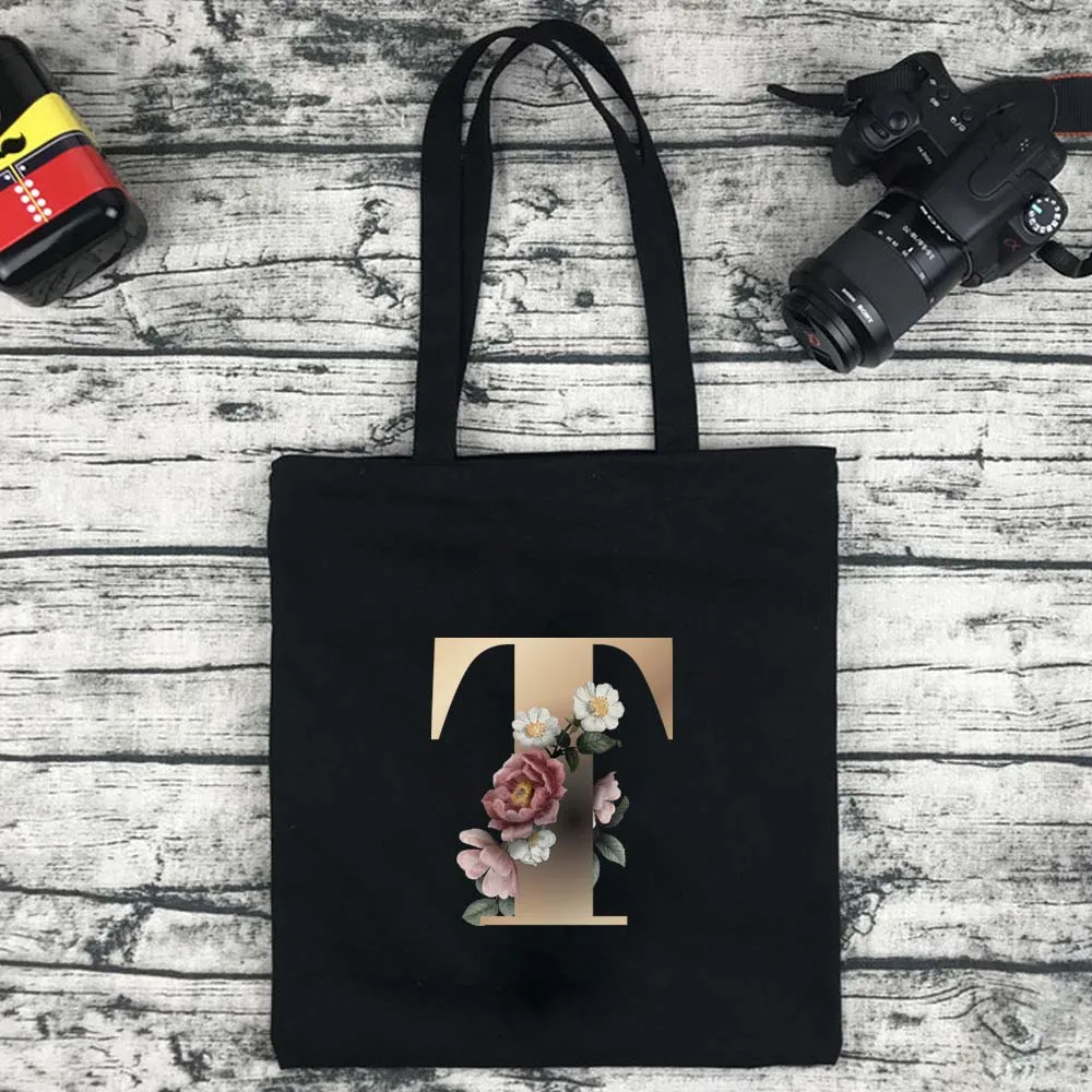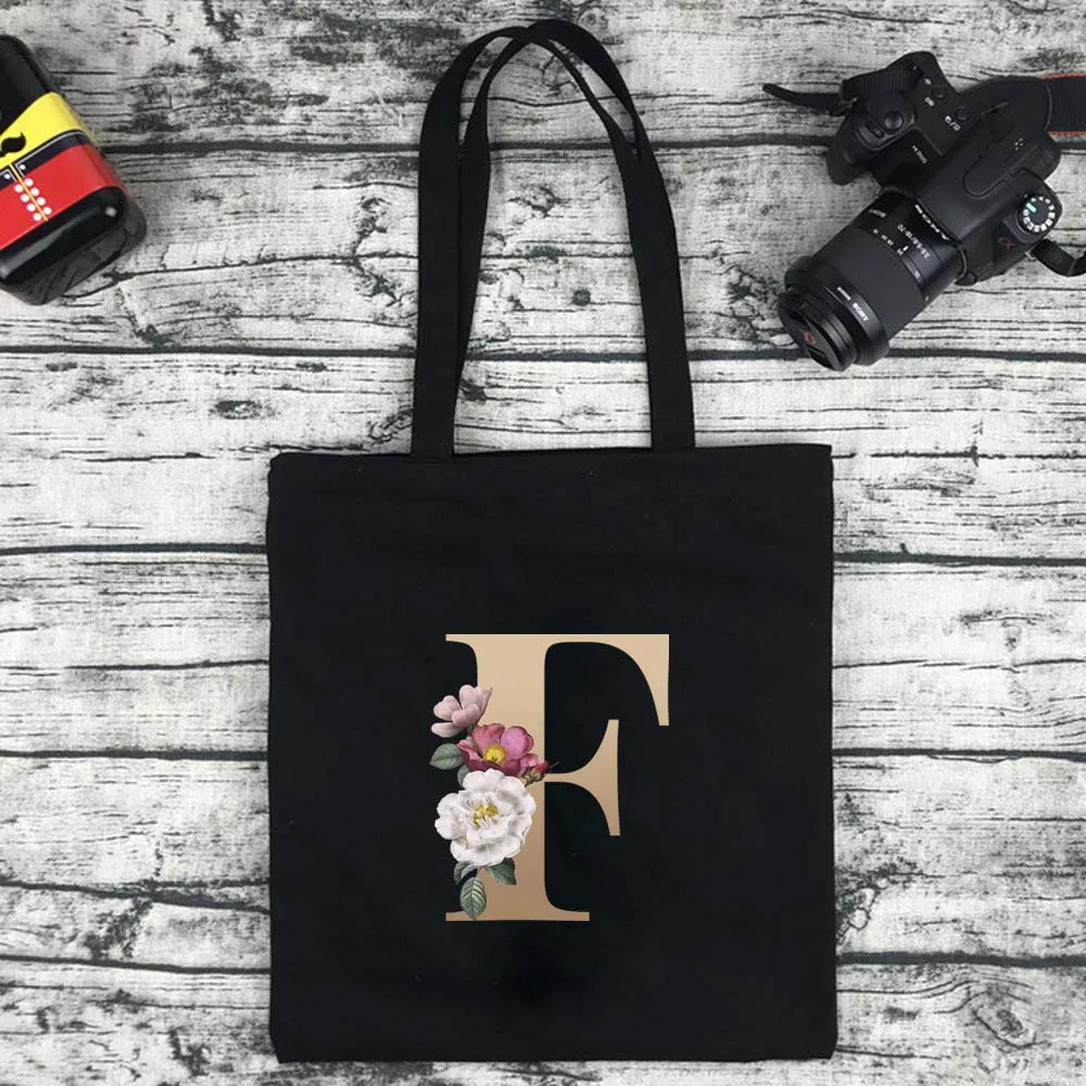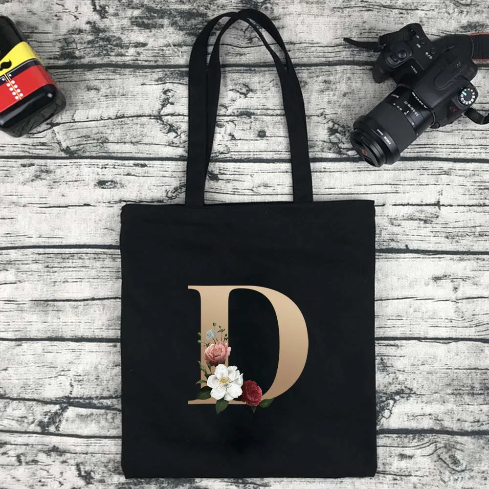 Сумка для покупок Женская холщовая с золотистыми буквами, модный саквояж большой вместимости для путешествий и колледжа, сумочка для покупок