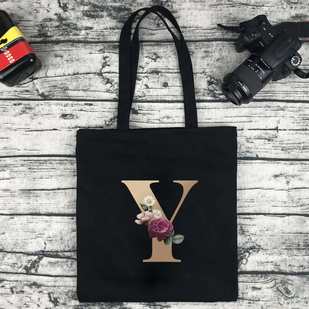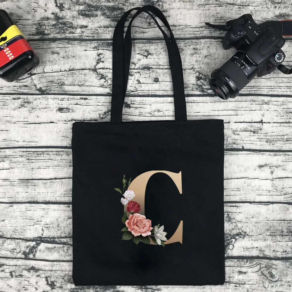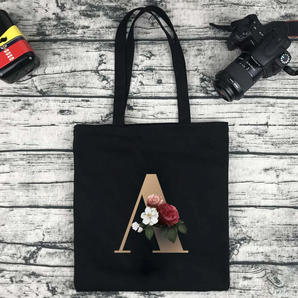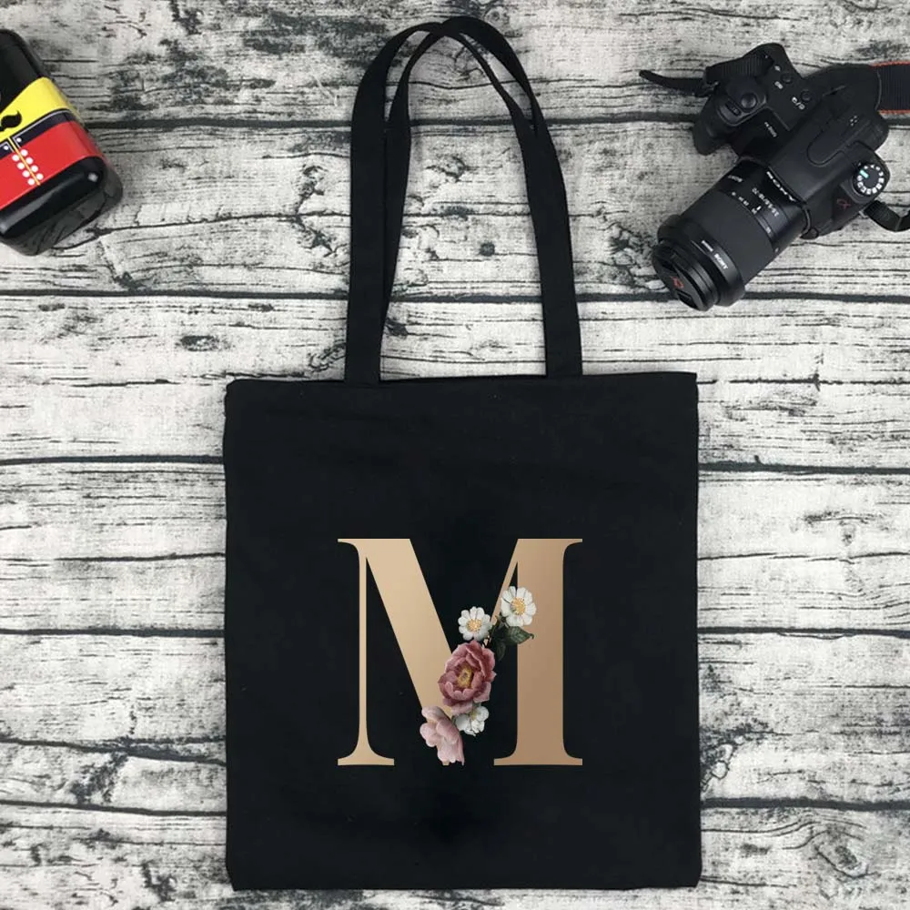Сумка для покупок Женская холщовая с золотистыми буквами, модный саквояж большой вместимости для путешествий и колледжа, сумочка для покупок