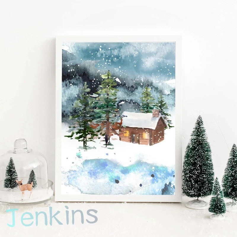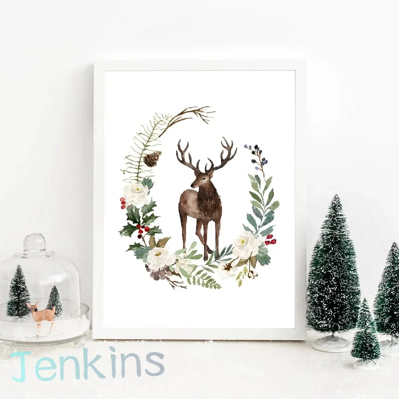 Рождественский стиль Зимний Олень Страна Чудес плакат настенное иск...