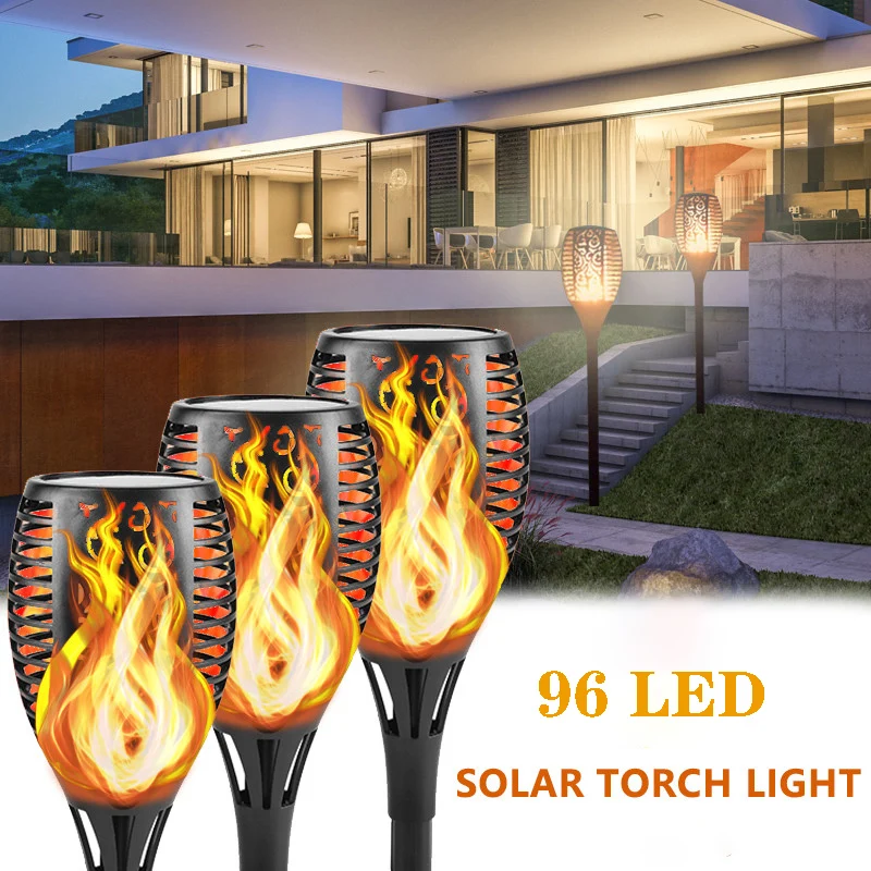 Уличные светодиодные фонари на солнечной батарее, водонепроницаемые садовые лампы с мерцающим пламенем, украшение ландшафта, освещение для двора и дорожек, 96 светодиосветодиодный