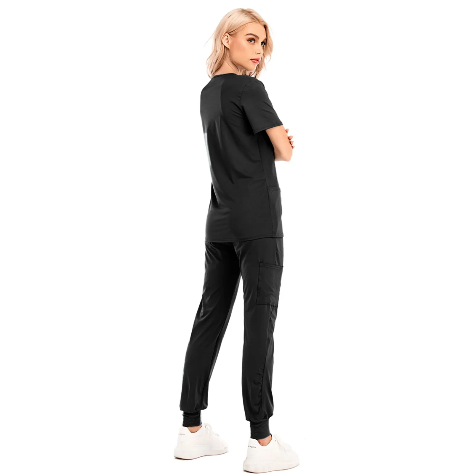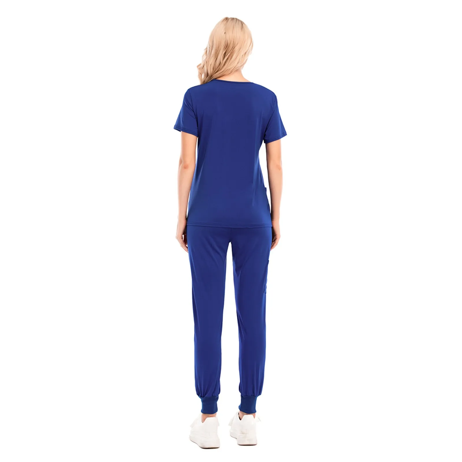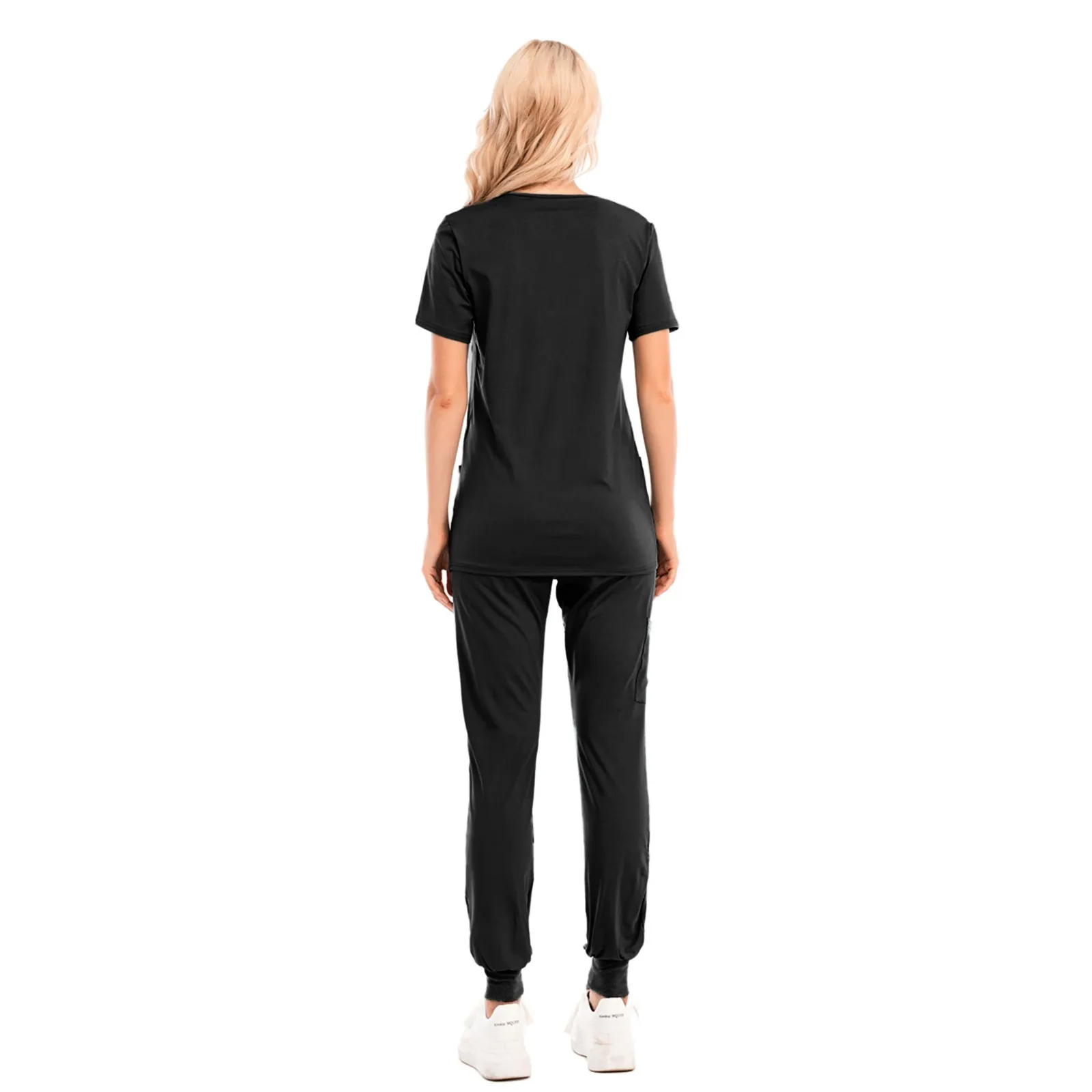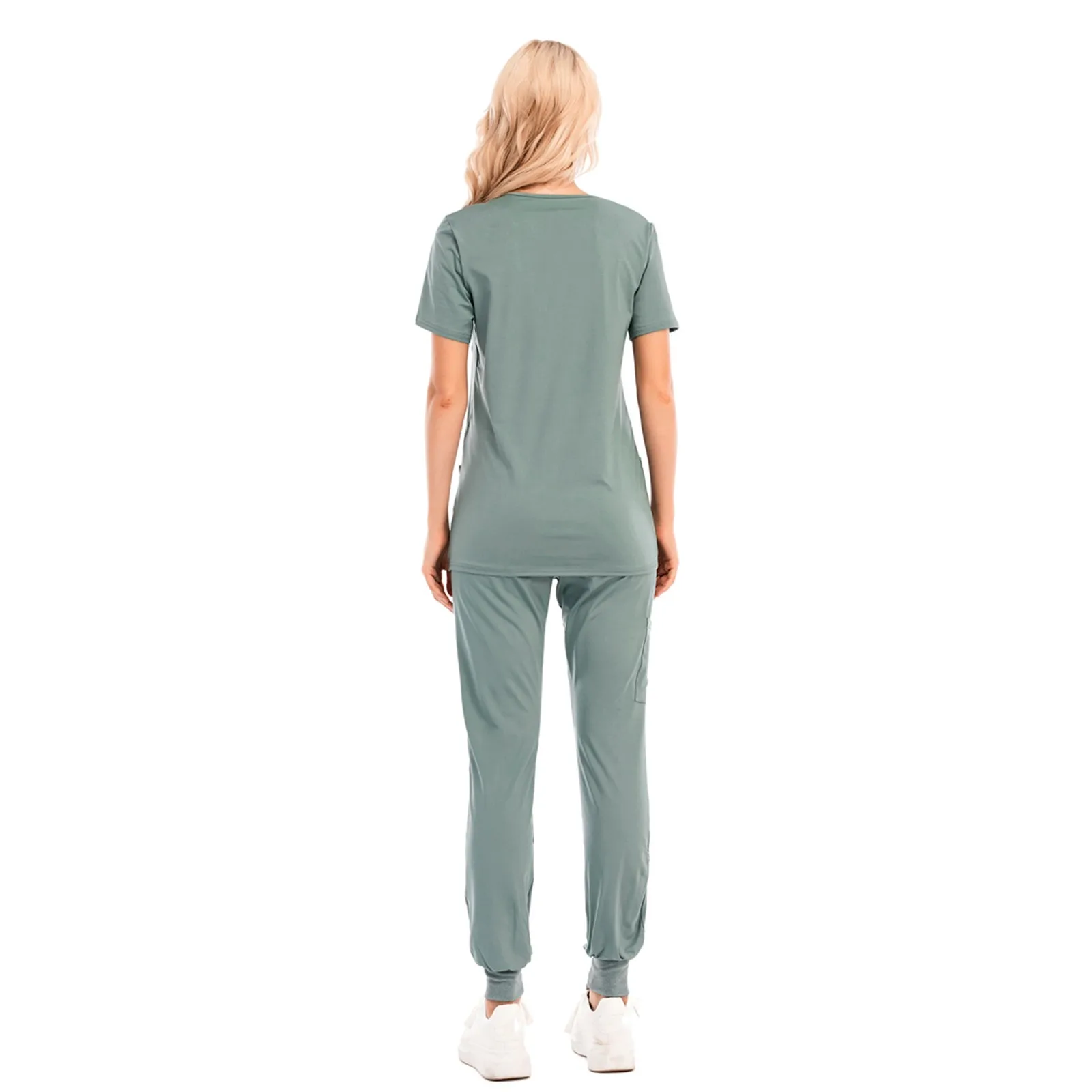 Женский топ с коротким рукавом и v-образным вырезом + брюки для медсестер, Рабочая форма с карманом