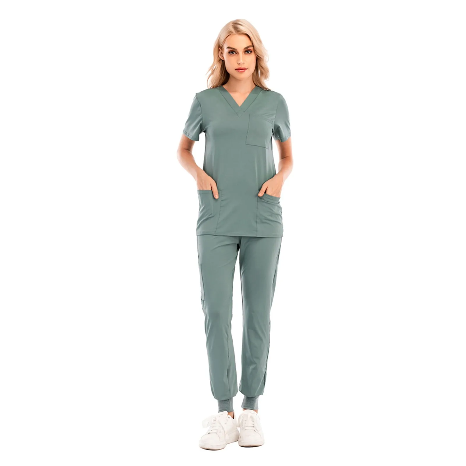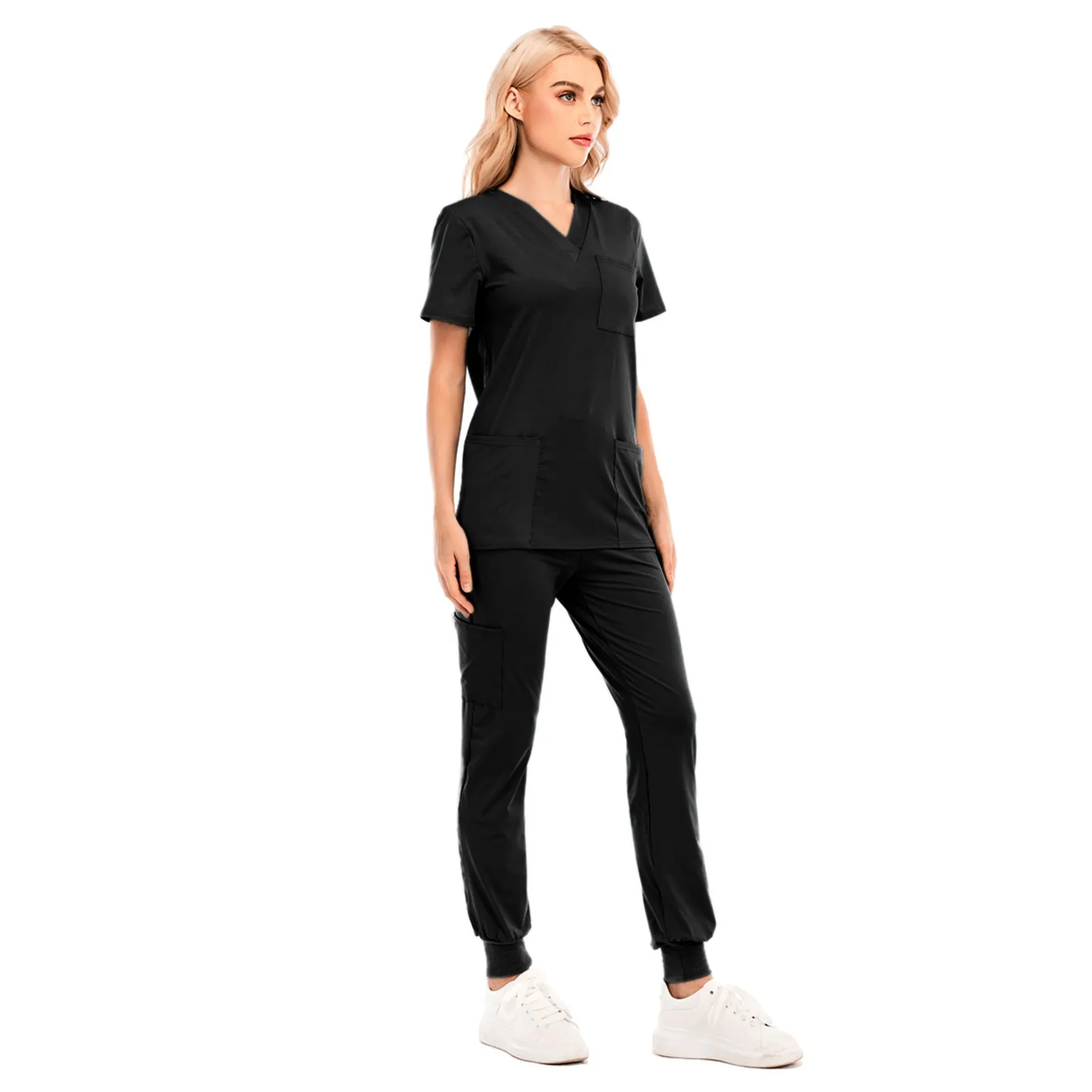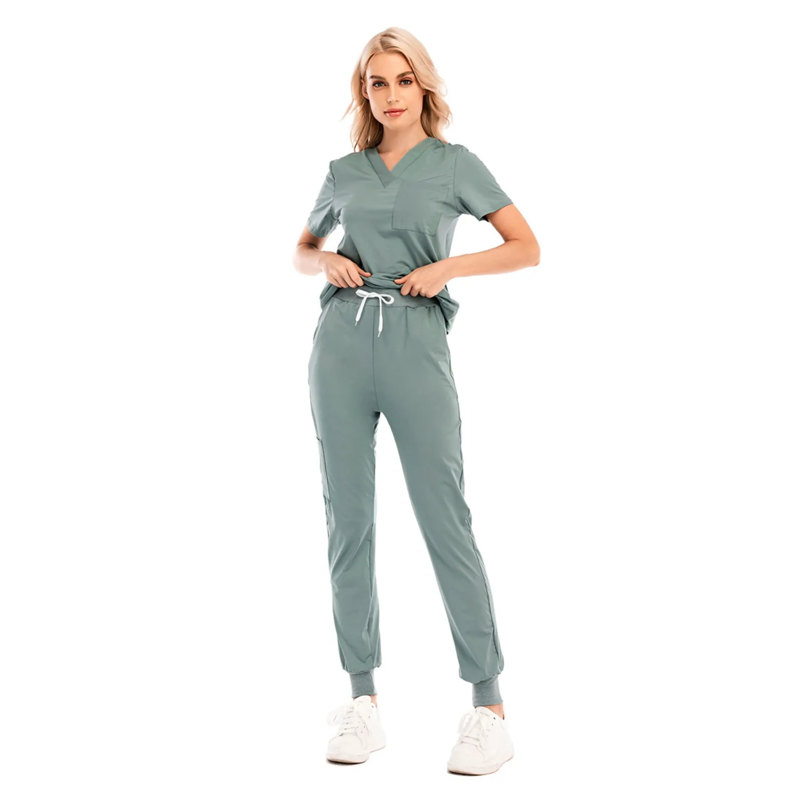 Женский топ с коротким рукавом и v-образным вырезом + брюки для медсестер, Рабочая форма с карманом