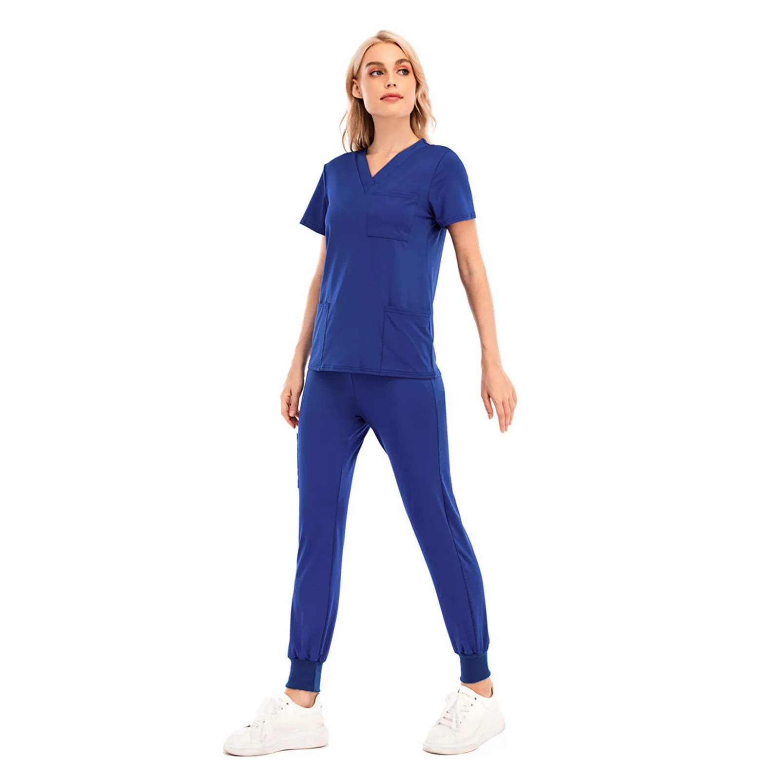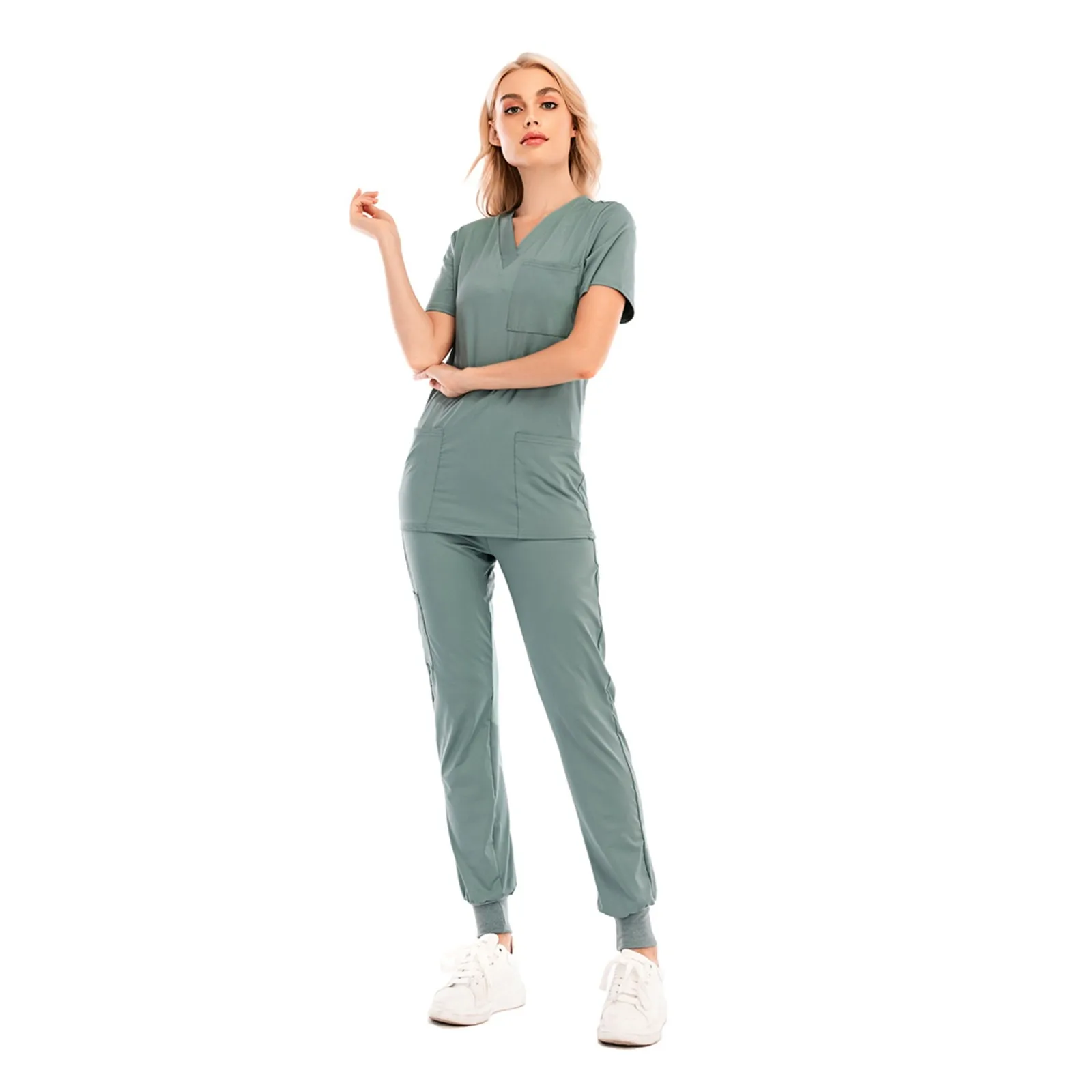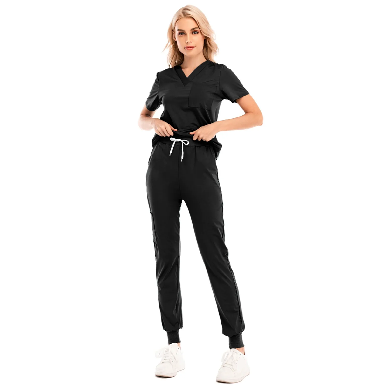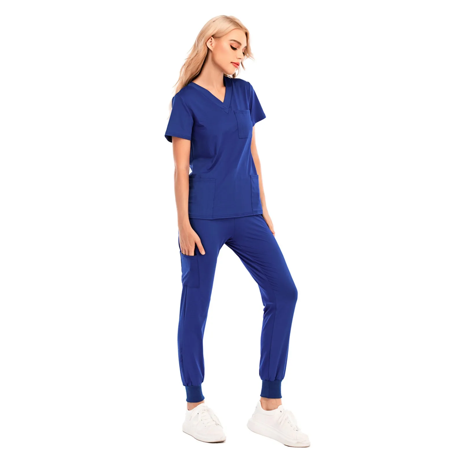 Женский топ с коротким рукавом и v-образным вырезом + брюки для медсестер, Рабочая форма с карманом