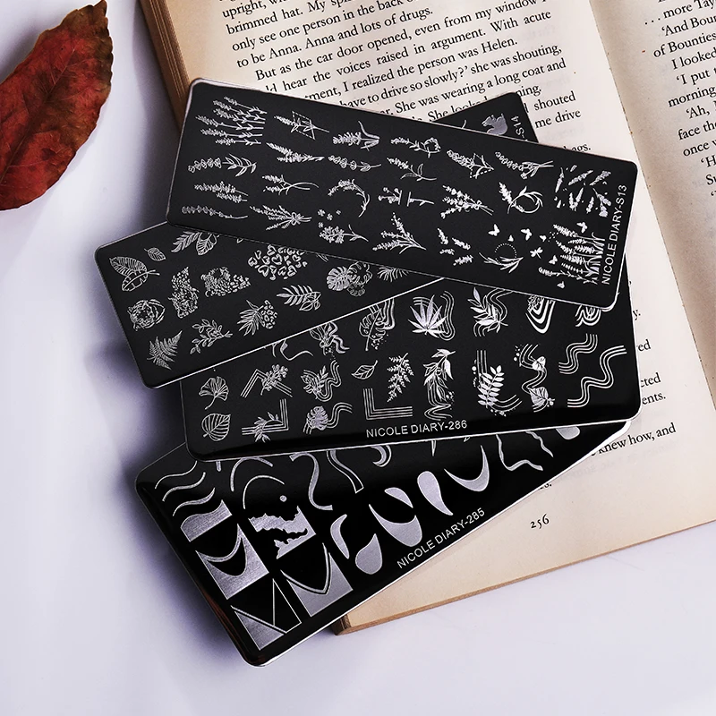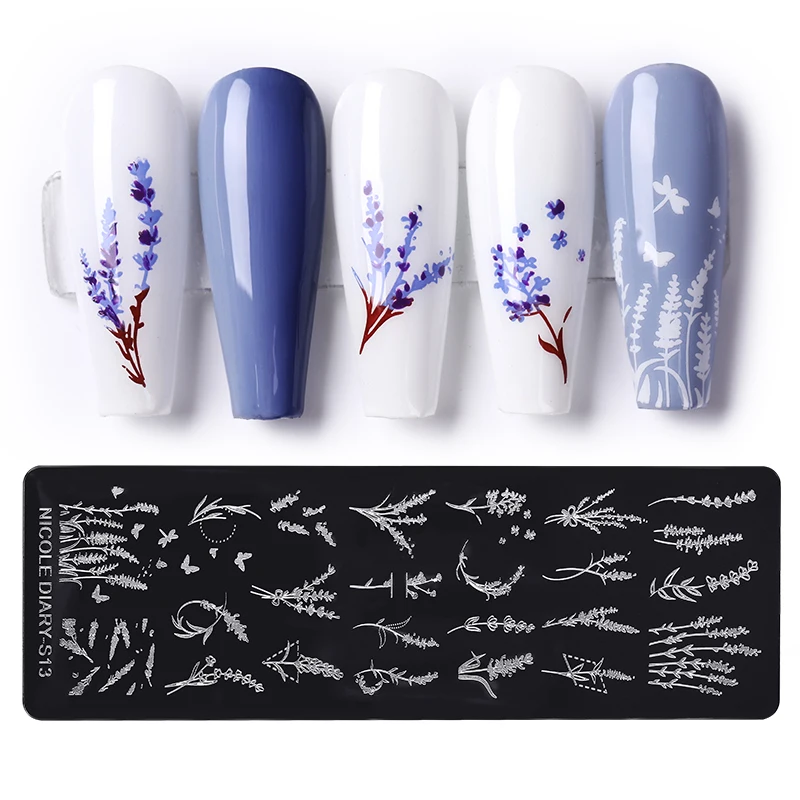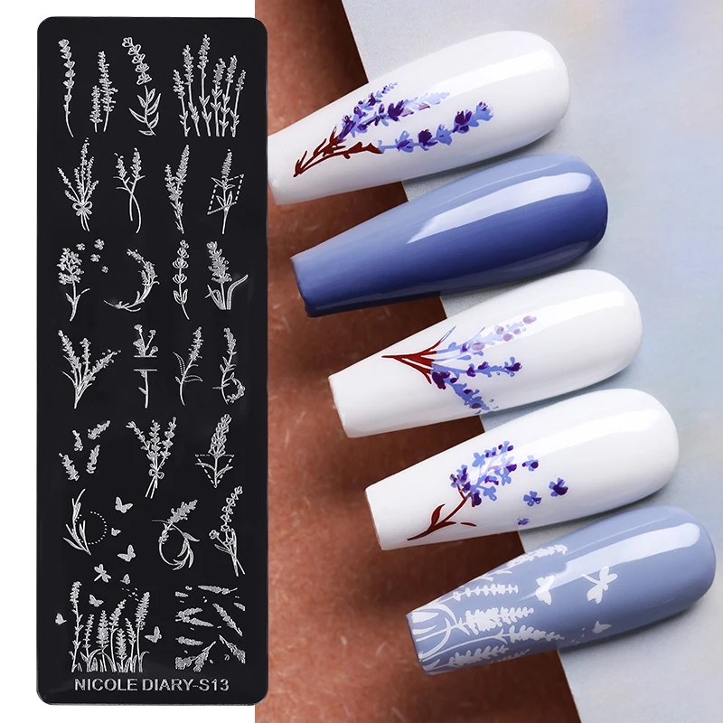 Трафареты NICOLE DIARY для стемпинга ногтей, пластины с лавандой, листьями, цветами, животными, листьями, цветочным принтом, инструменты для ногтей