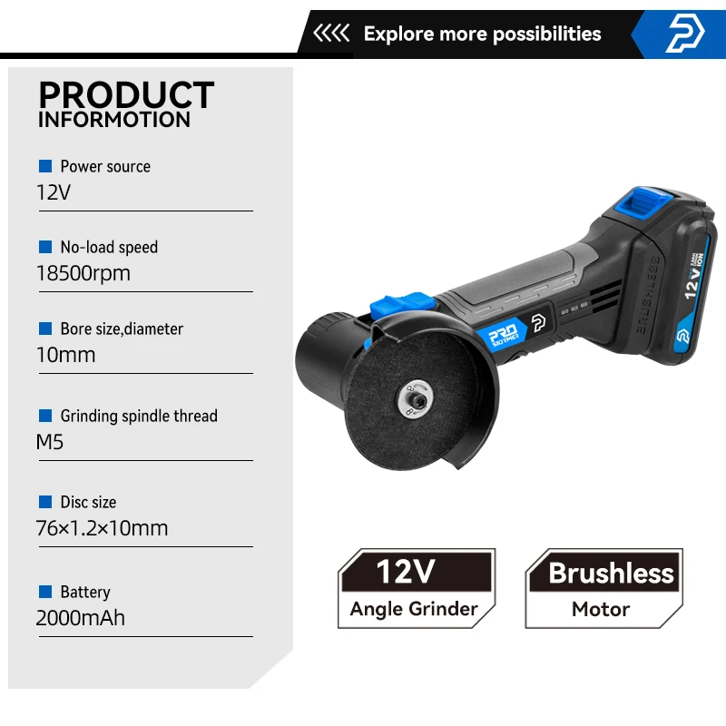 Аккумуляторная угловая шлифовальная машина PROSTORMER, 2000 мАч, 12 В