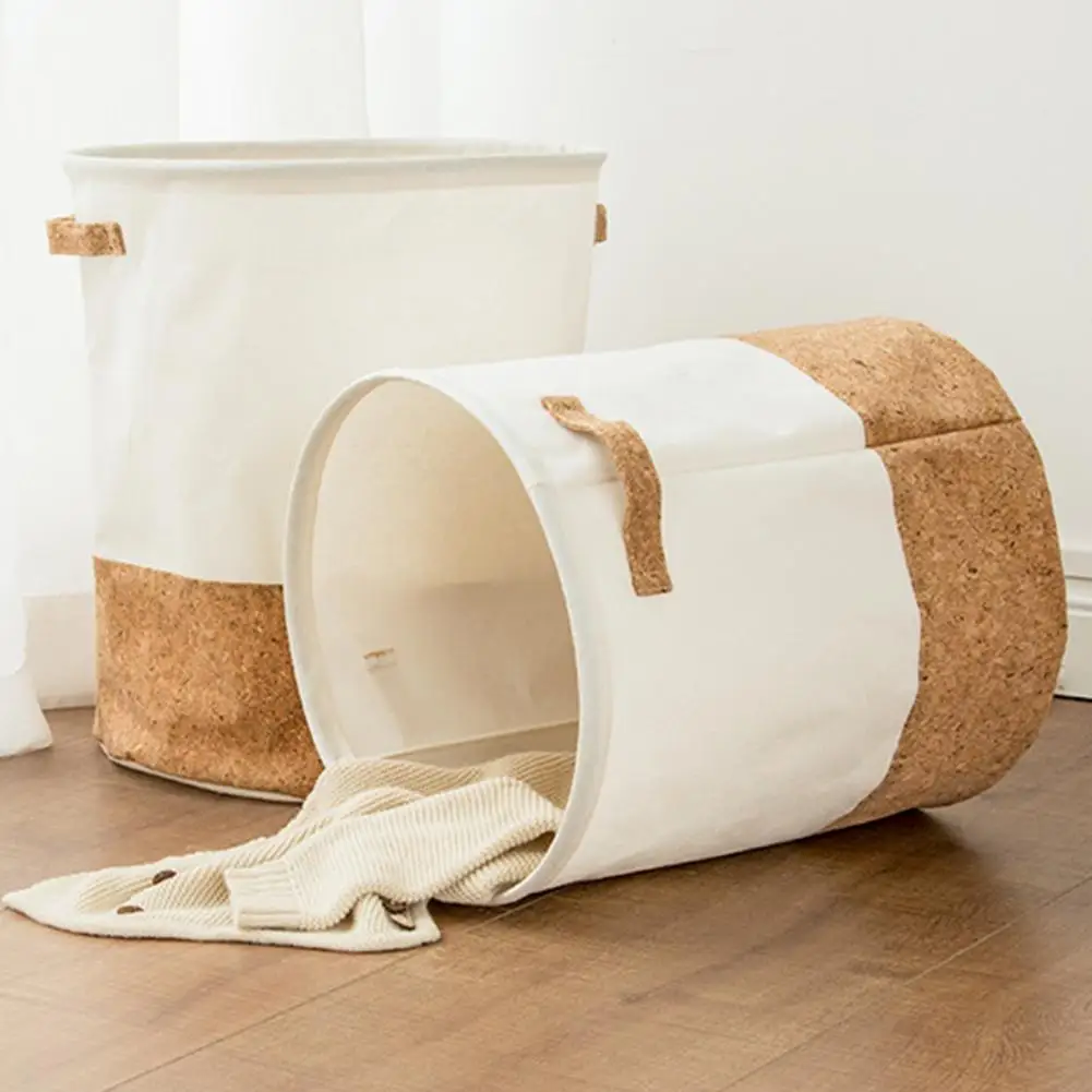 Цилиндрическая корзина для белья с ручкой из искусственного хлопка и льна, детская комната, игрушка, мешок для белья для дома
