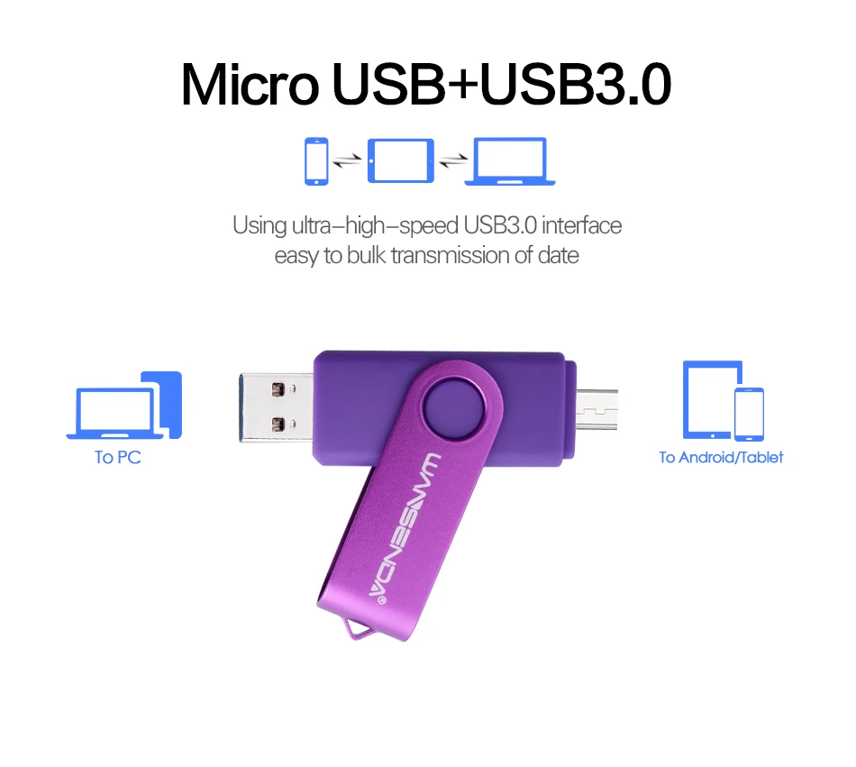 Флеш-накопитель WANSENDA, USB 3,0, OTG, 256 ГБ, 128 ГБ, 64 ГБ, 32 ГБ, 16 ГБ