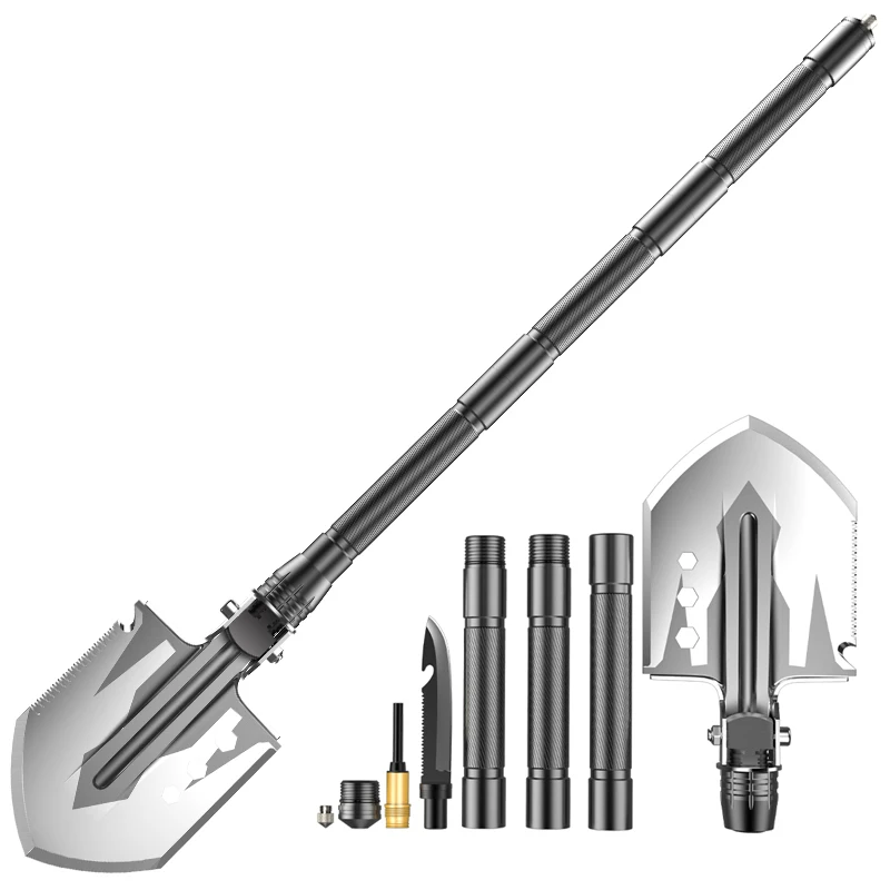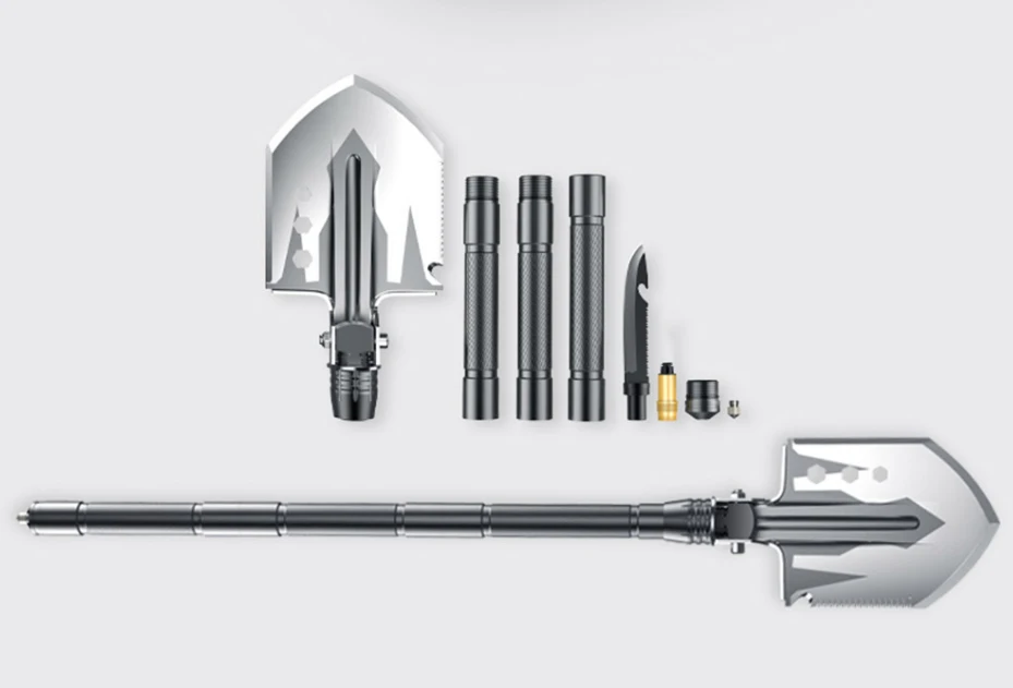 Особенности:1. Поверхность лопаты. Многофункциональный нож. Отвертка. Разбитое окно конус верхней крышки.2. Расширения: тактическая ручка/палки для альпинизма3. Процесс: Высокотемпературная Обработка лопатой, полировка после поверхности, закалка и окисление алюминиевых ручек4. Резка. Розыгрыш. Получить масштабный нож. Штопор. Отвертка. Свист выживания. Br окен конус окна. Альпеншток. Тактическая ручка.5. Аксессуары: Mutli-function knife.screwdriver.whistle.br окен конус окна.6. Лучшее использование: Кемпинг. Туризм. Самоуправляемое оборудование. Езда на природе. Аварийные инструменты.