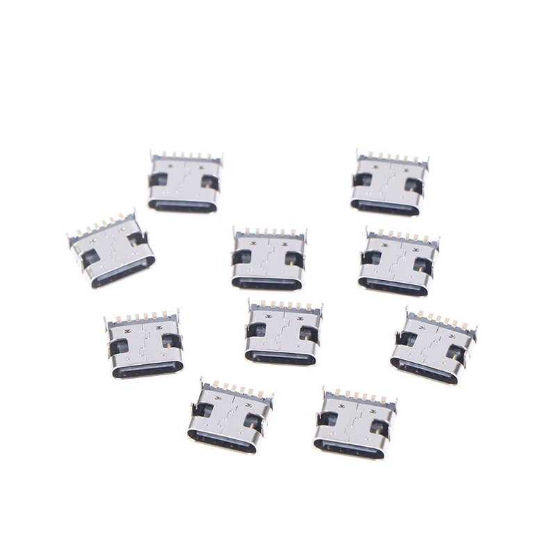 10 шт., 6-контактный разъем USB Type-C, разъем USB 3.1 Type-C мама, размещение SMD