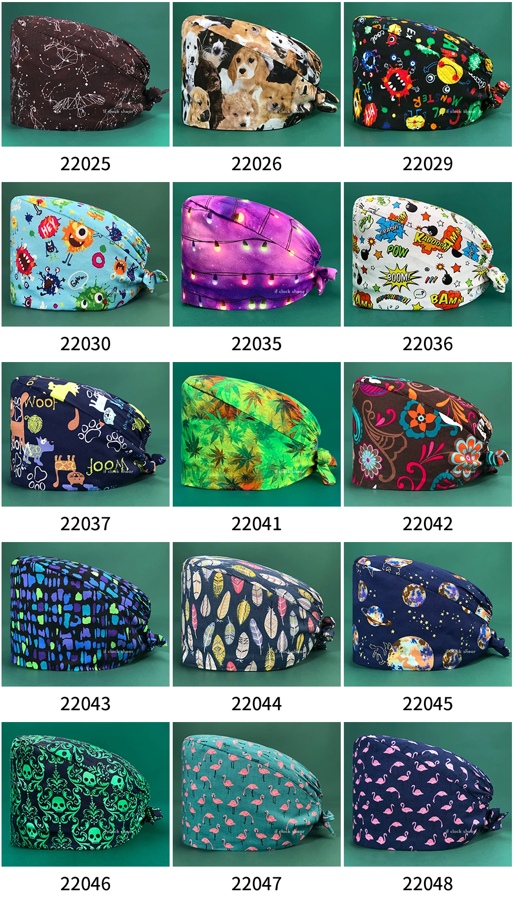Регулируемые хлопковые медицинские шапочки с принтом животных