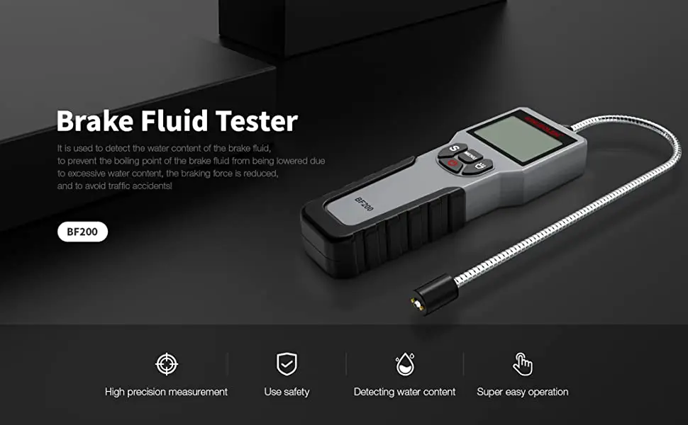 Встроенная функция звуковой сигнализации: при обнаружении влажности тормозной жидкости, превышающей стандарт, сигнал тревоги на задней части устройства будет звучать, чтобы заменить жидкость.