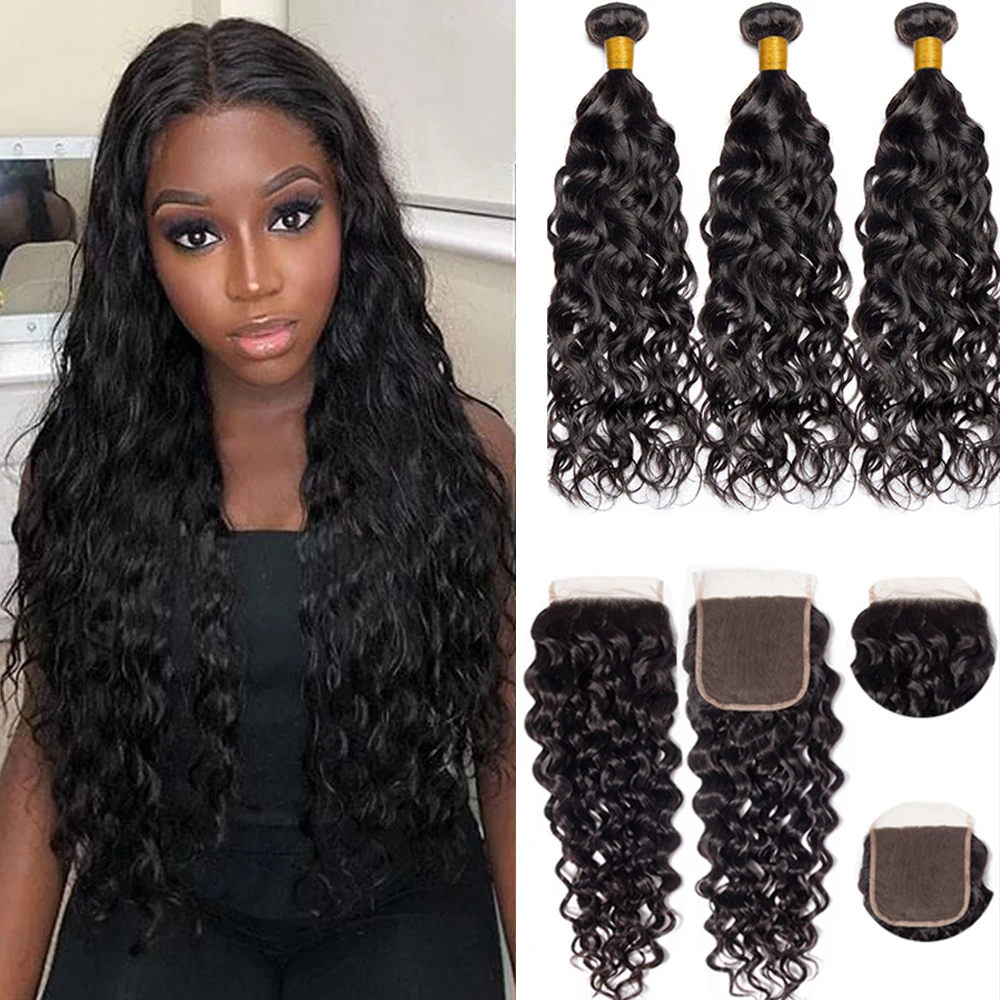 Малазийские волнистые пучки с застежкой, бразильские волосы Remy, 3 пряди, влажные и волнистые человеческие пучки волос с застежкой