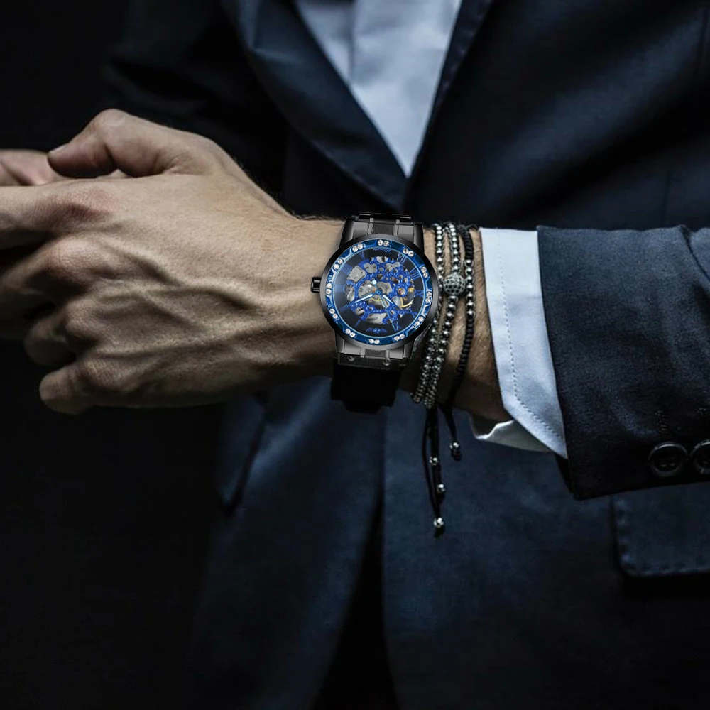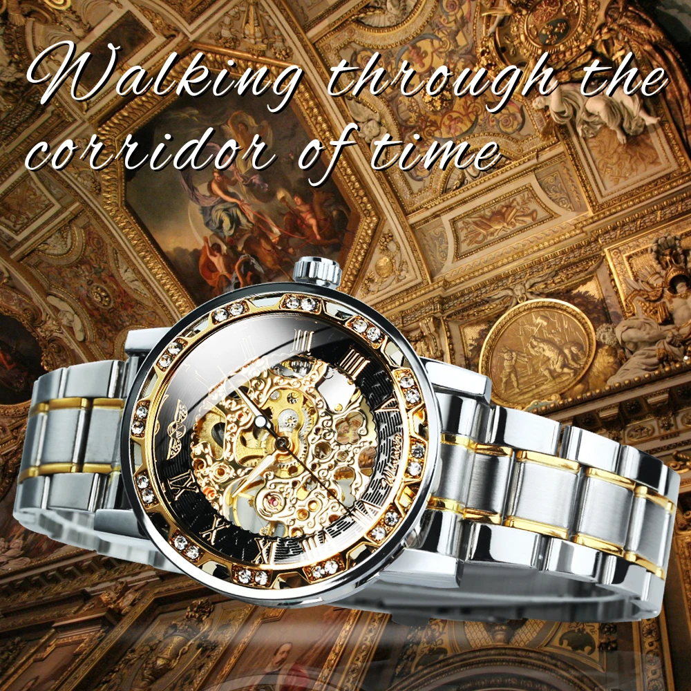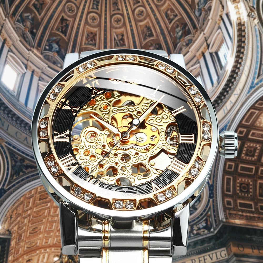 Часы наручные Winner мужские механические, прозрачные брендовые роскошные, со стразами, с каркасом, Королевский подарок