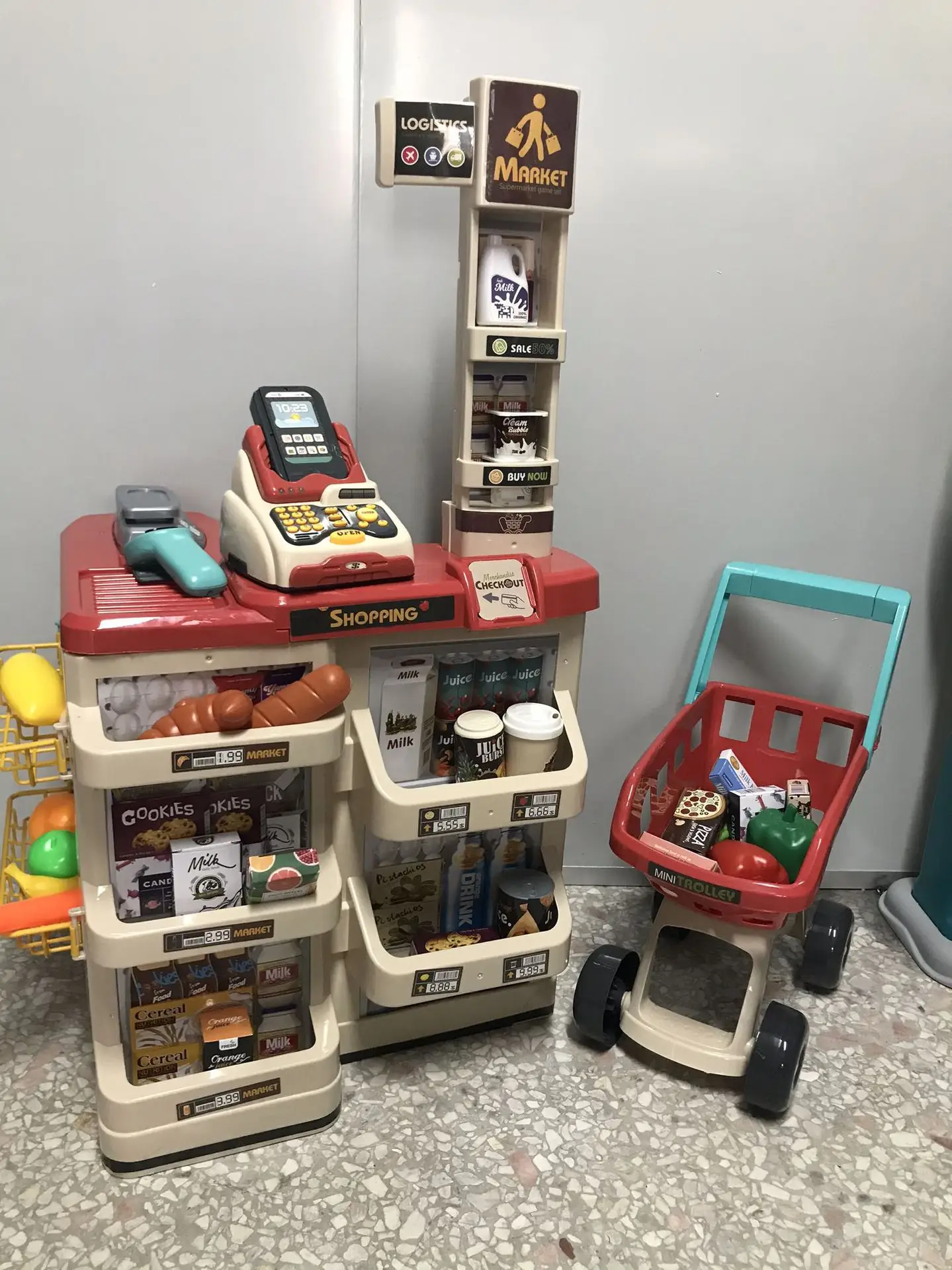 Торговый автомат для супермаркета, Детская имитация корзины, комбинированный набор, игровой дом, супермаркет, сканирующие кассовые игрушки
