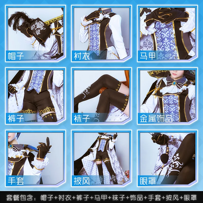 Материал: полиэстер.Посылка включает в себя: рубашку + жилет + плащ + шляпу + перчатки + аксессуары (как показано на рисунке).Пол: женский.