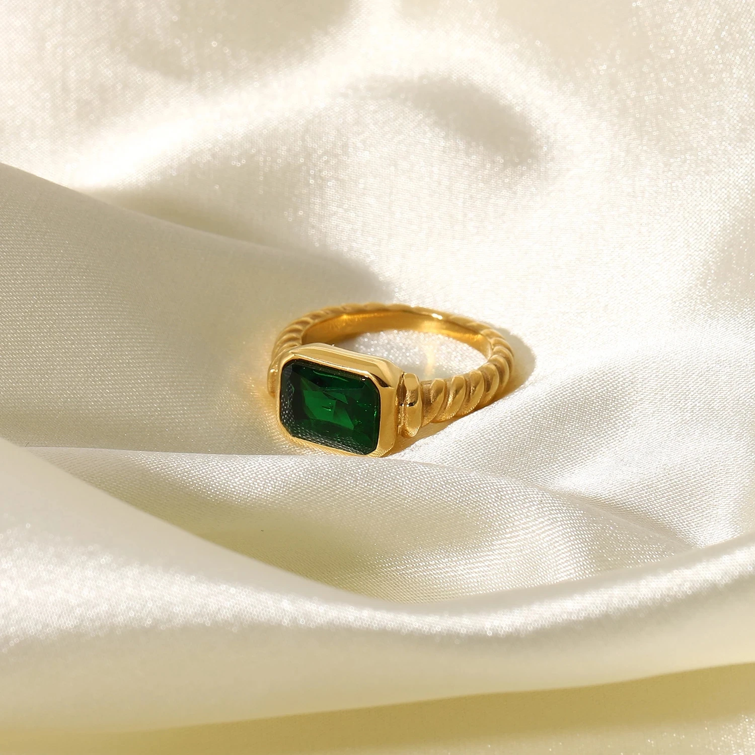 Blingbling прямоугольное циркониевое кольцо 18K Золото PVD покрытие...