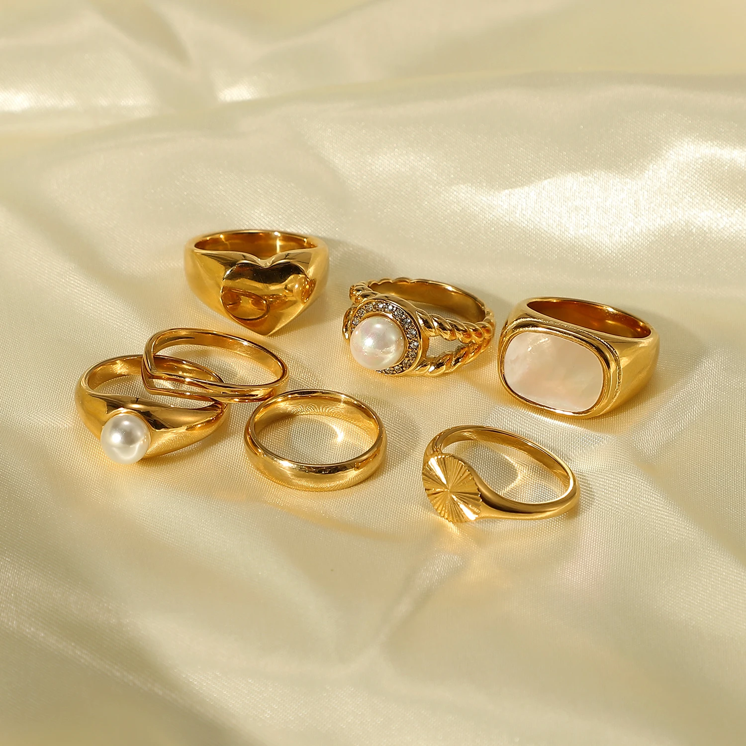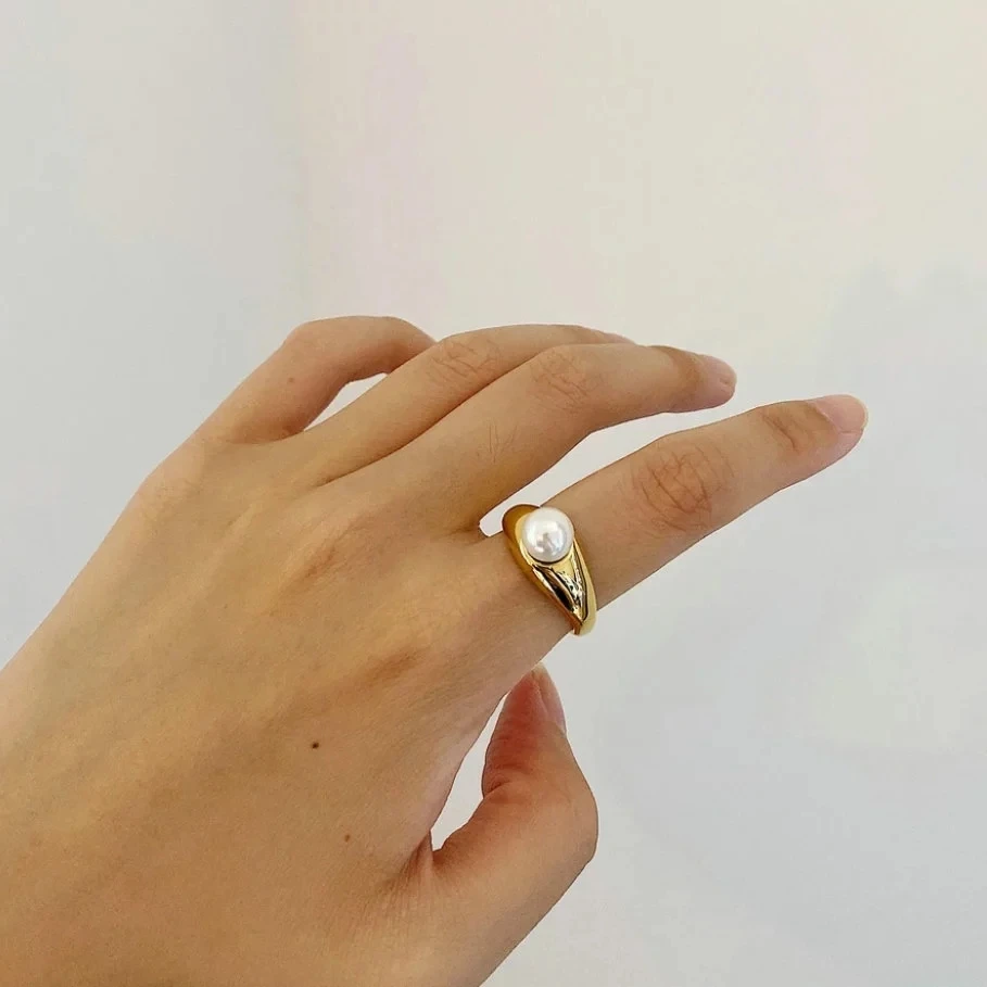 Женское кольцо с жемчугом и круассанами, из нержавеющей стали