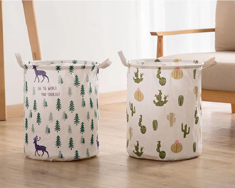 Назначение: одежда и корзина для хранения игрушек, хлопковая и льняная ткань, водонепроницаемая и влагостойкая, с широкой ручкой, легко брать.