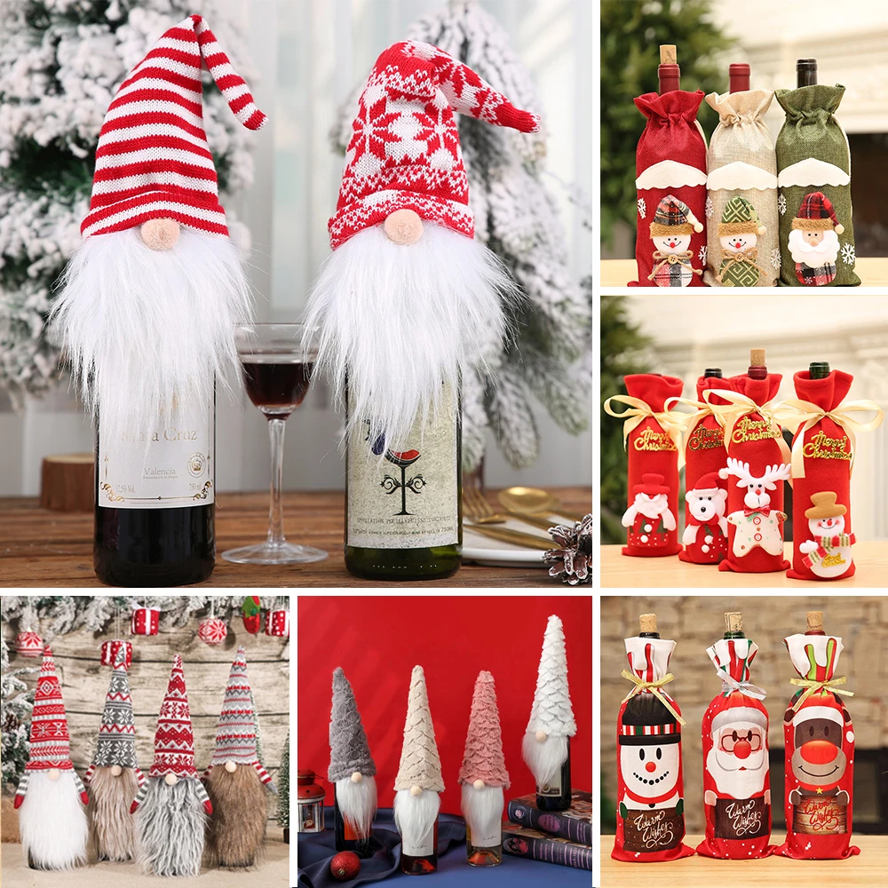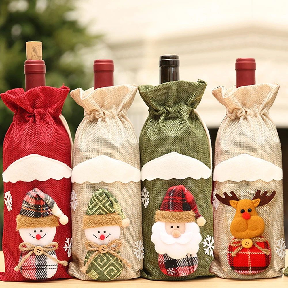 Рождественские украшения для дома Чехол для винной бутылки с Санта-Клаусом