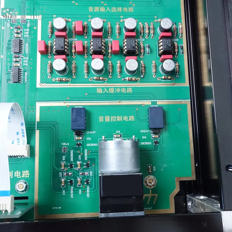 Эта машина для сохранения исходной машины и выбора материалов, особенно емкости, больше, чем оригинальная машина, например, оригинальная машина является общей ёмкостью nikon GU с черным, мы используем основной фильтр-конденсатор nikon blue BC, случайная часть, чтобы оставить евро обратно конденсаторы ELNA, Основной силовой трансформатор обновляется до 25 Вт, блок питания после тестирования переключается на цепь лучшего класса А. Добавлен выбор пульта дистанционного управления и функция дистанционного управления громкостью. Панель переключателя выбрана с светильник мягкой кнопки, интуитивно понятный и простой в эксплуатации. Схема каждого блока была дополнительно оптимизирована. Печатная плата покрыта золотом с 14 операционными усилителями, среди которых 4 шт 5532 являются входными буферами, 4 шт 5534 являются основным усилением, и 6 шт 5534 являются выходными буферами, все для лучшей производительности. В этой версии, измеренный шум низкий, искажение низкое, ответ частоты проверки AP 0-100k плоский, реальная мощность слуха высокая, качество звука прозрачное без тона, баланс трех частот, низкая частота толстая и прочная.