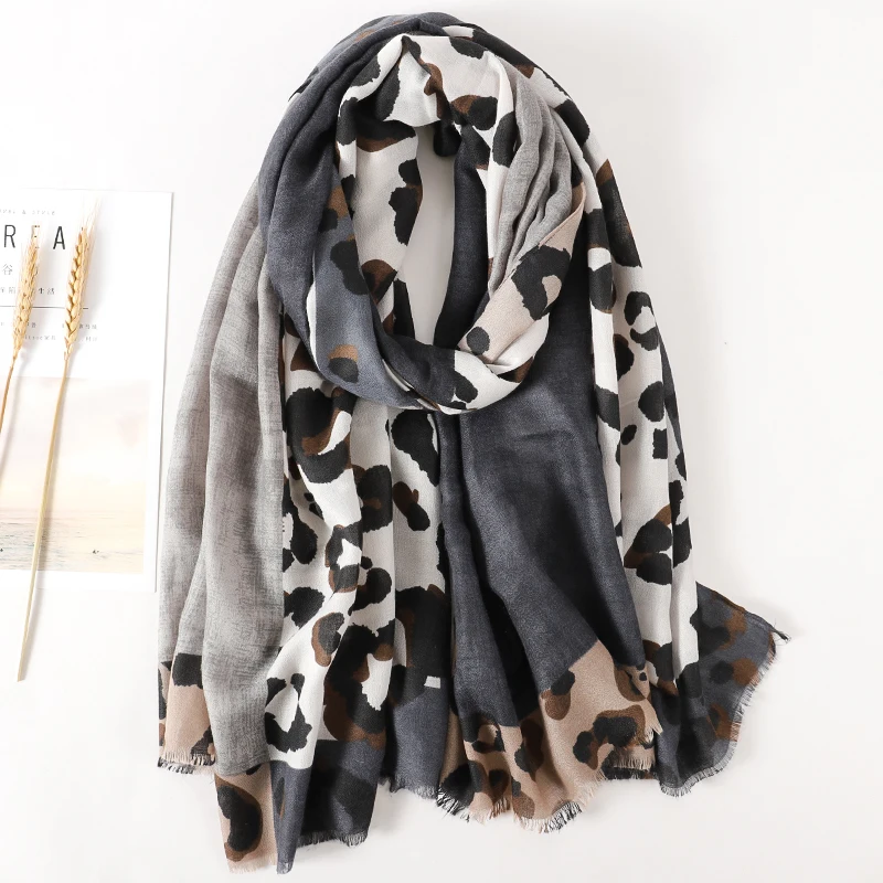 2022 дизайнерский брендовый осенний роскошный серый женский шарф с леопардовым принтом женский длинный шарф шаль тонкая коричневая модная искусственная кожа