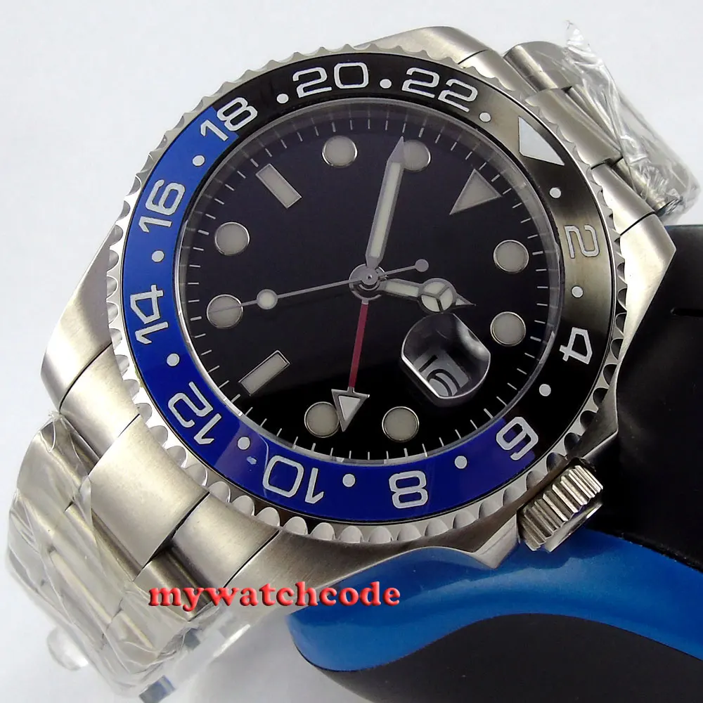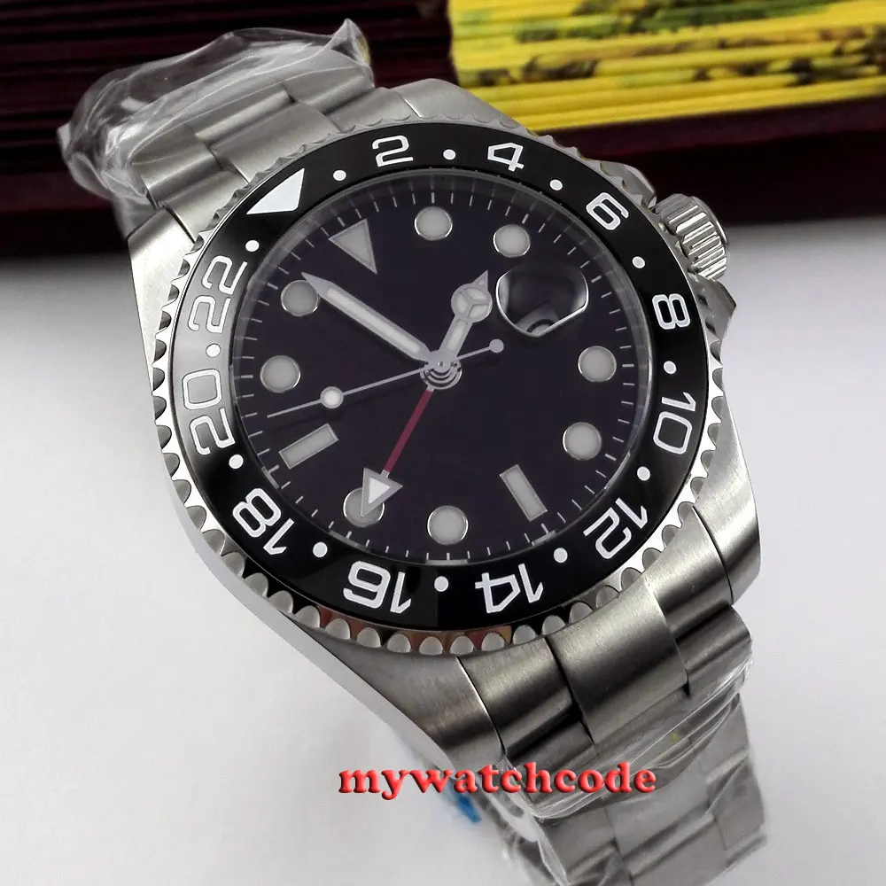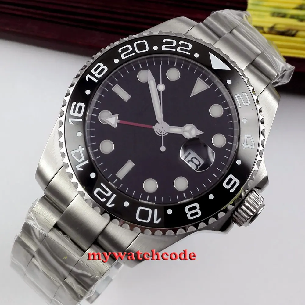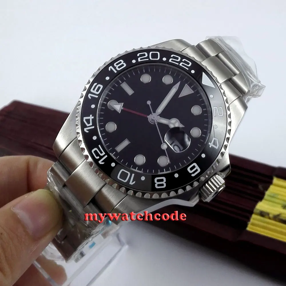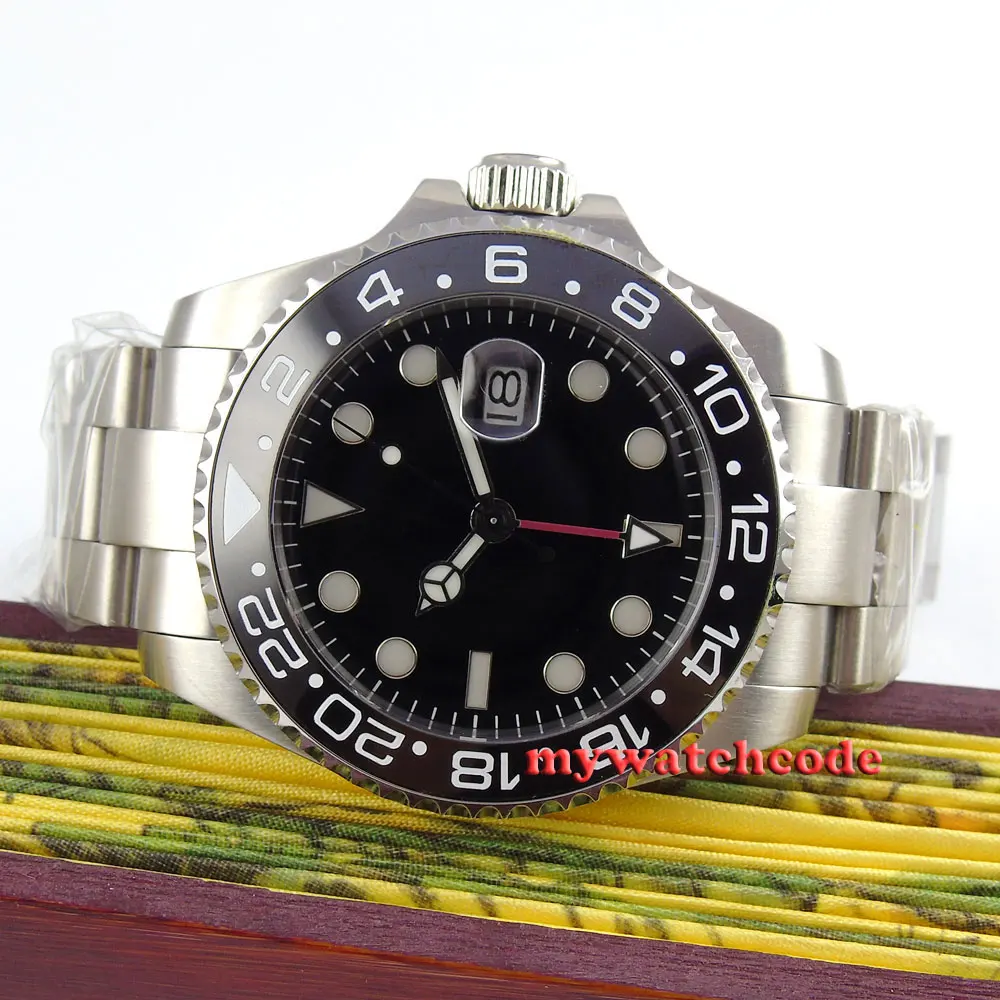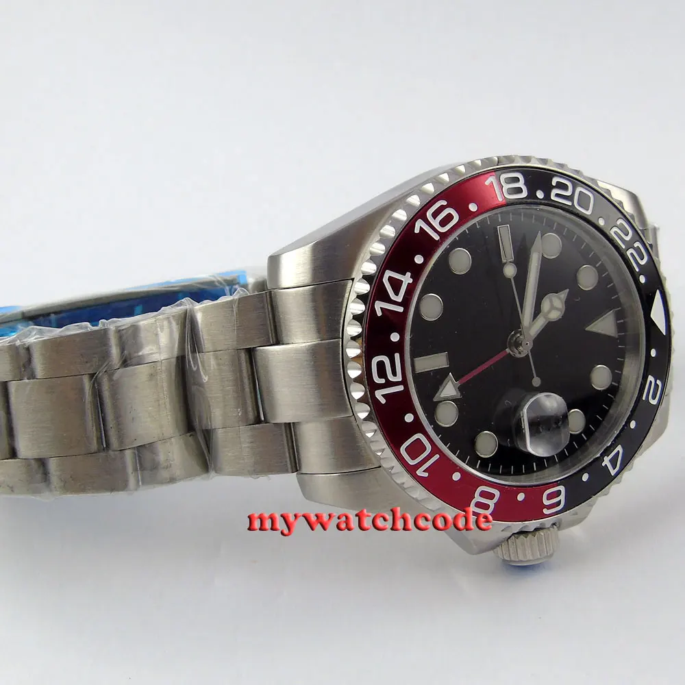 43 мм черный циферблат механические Автоматические Мужские часы красный GMT ручной сапфировый кристалл светящиеся отметки Oyster браслет