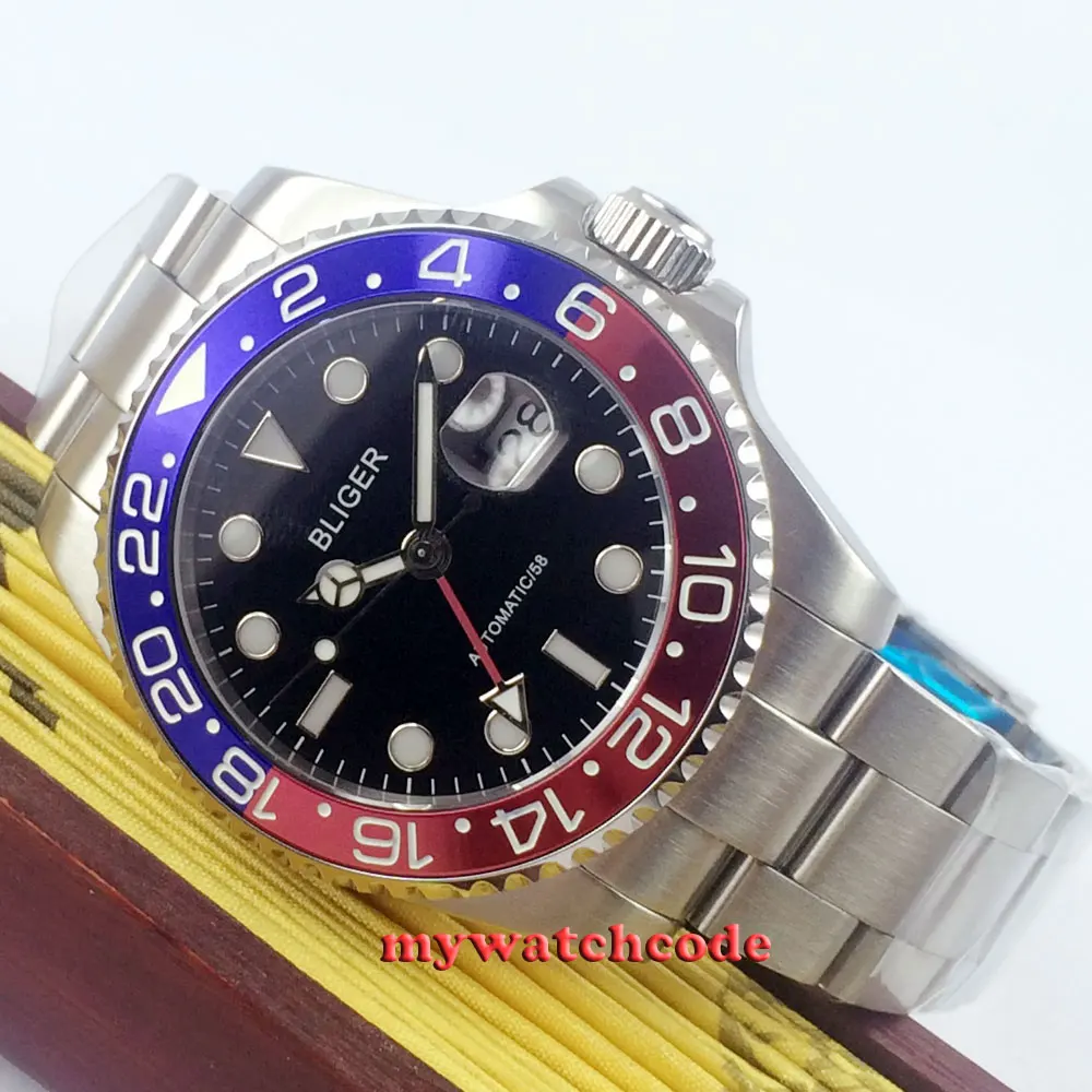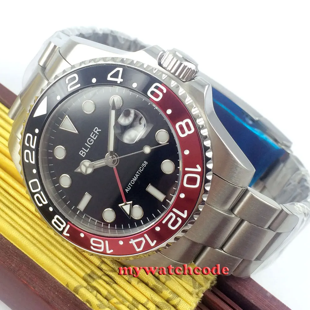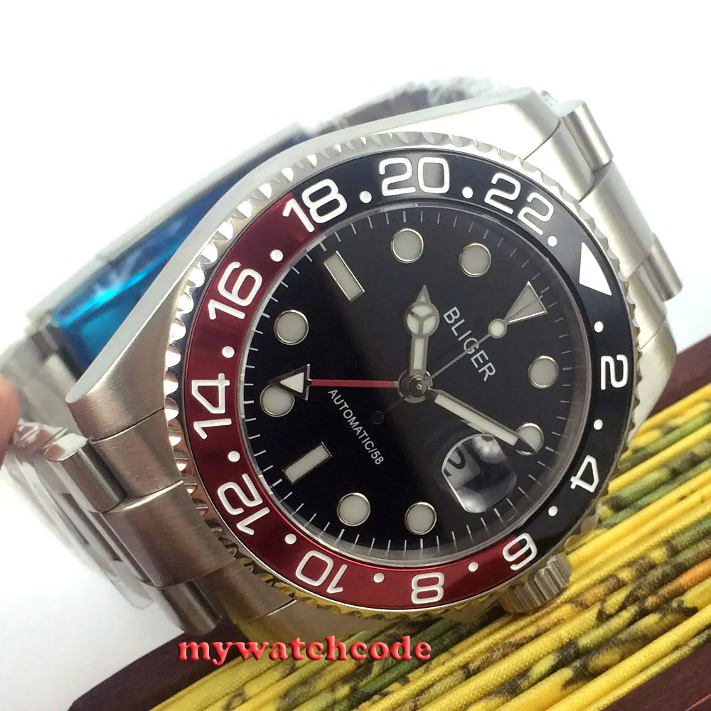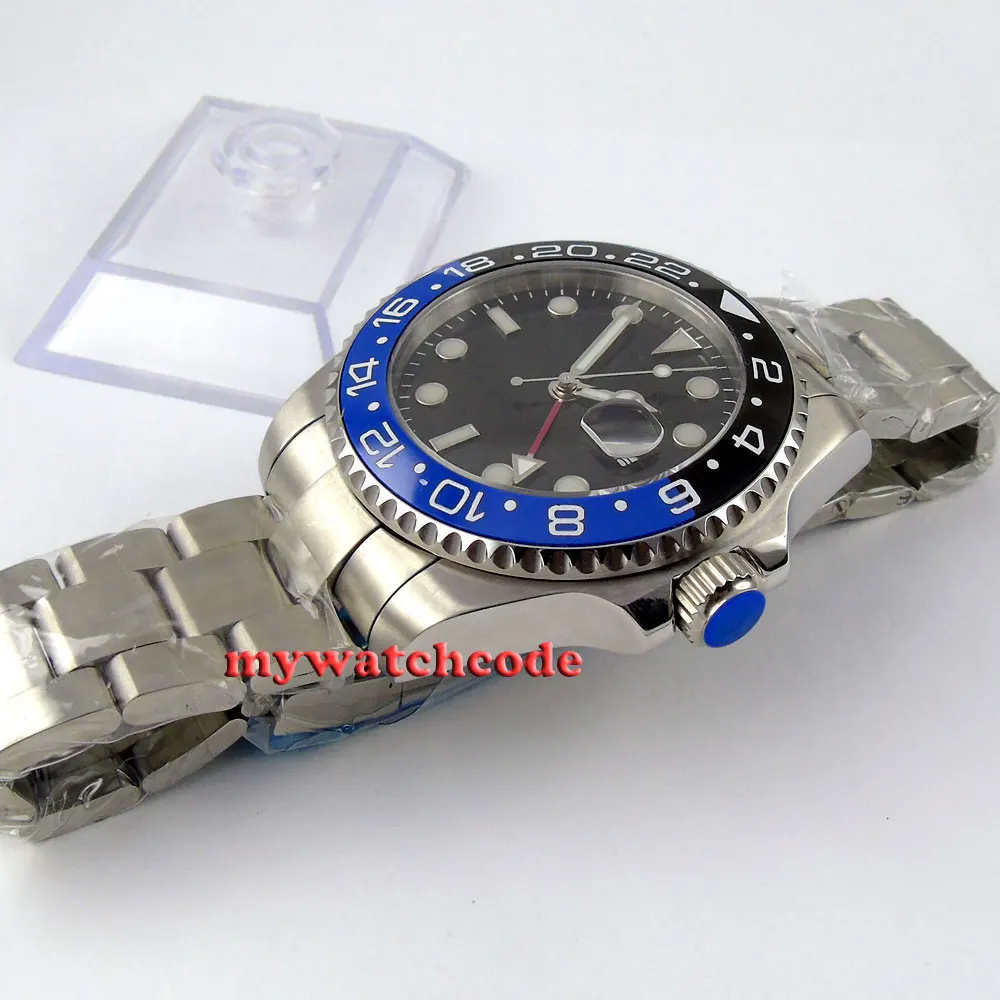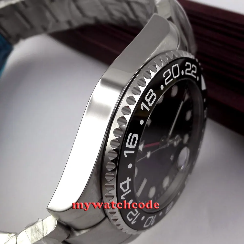 43 мм черный циферблат механические Автоматические Мужские часы красный GMT ручной сапфировый кристалл светящиеся отметки Oyster браслет