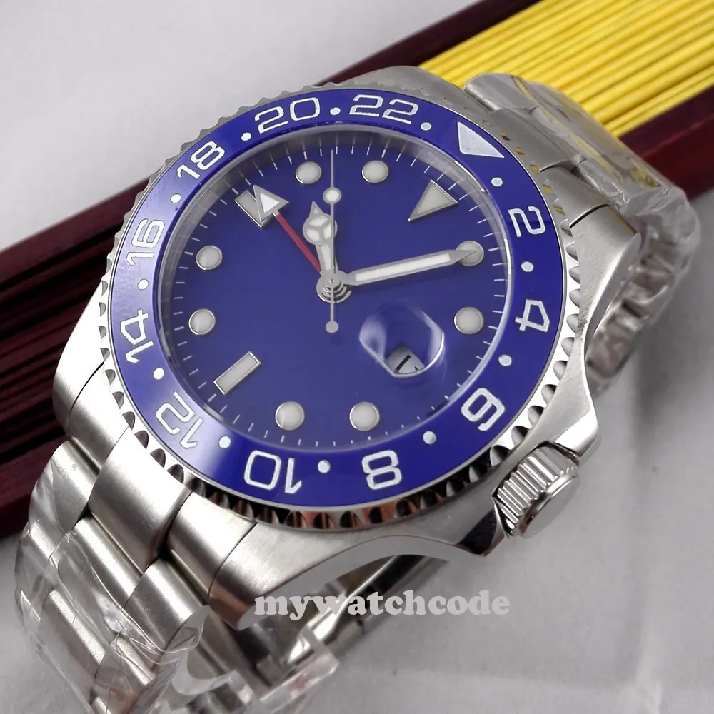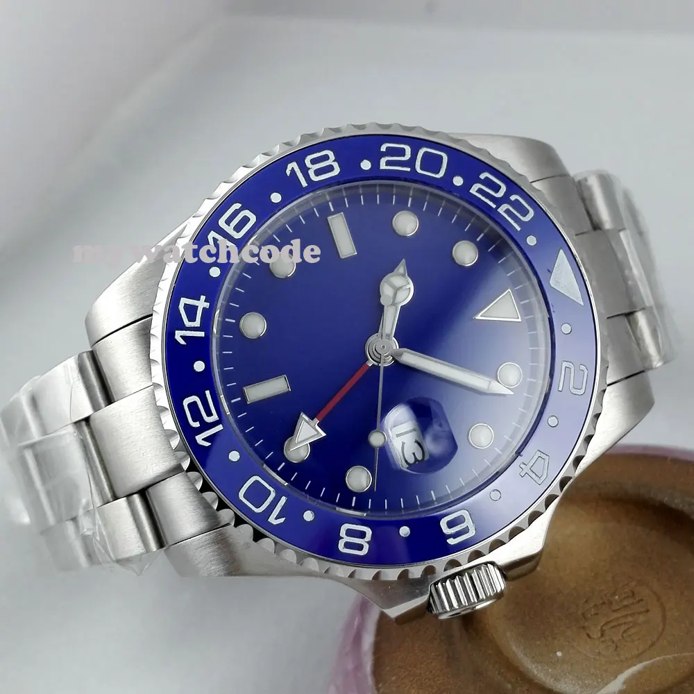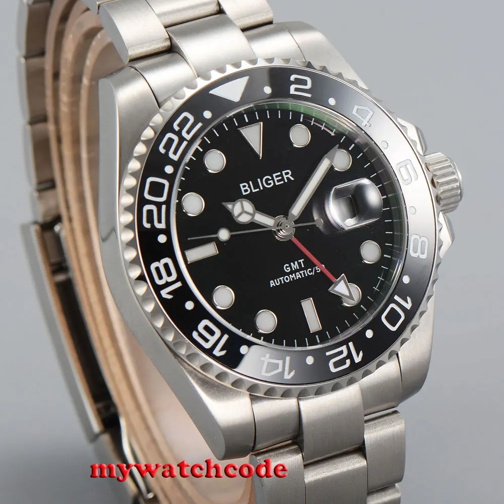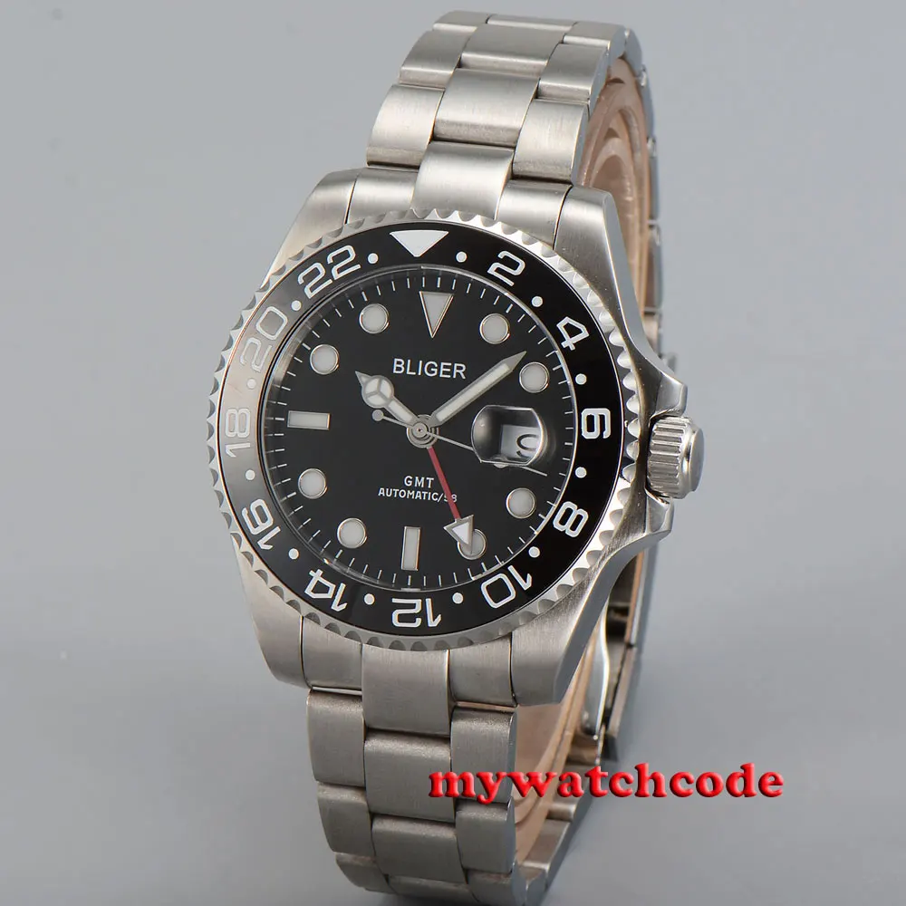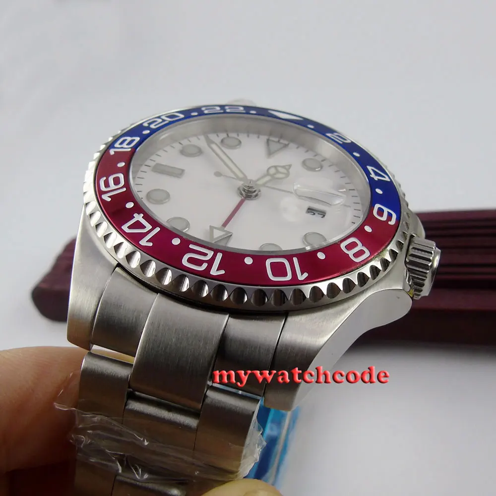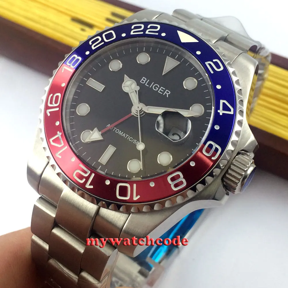 43 мм черный циферблат механические Автоматические Мужские часы красный GMT ручной сапфировый кристалл светящиеся отметки Oyster браслет