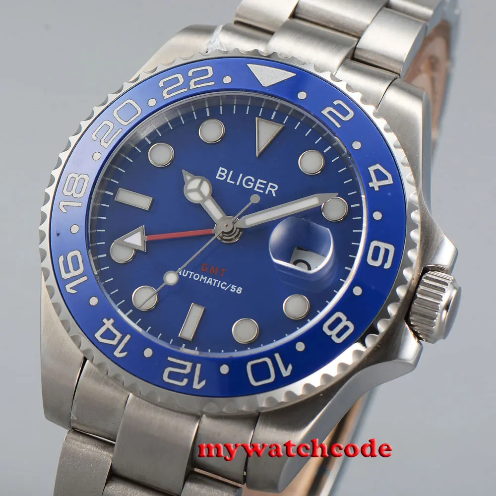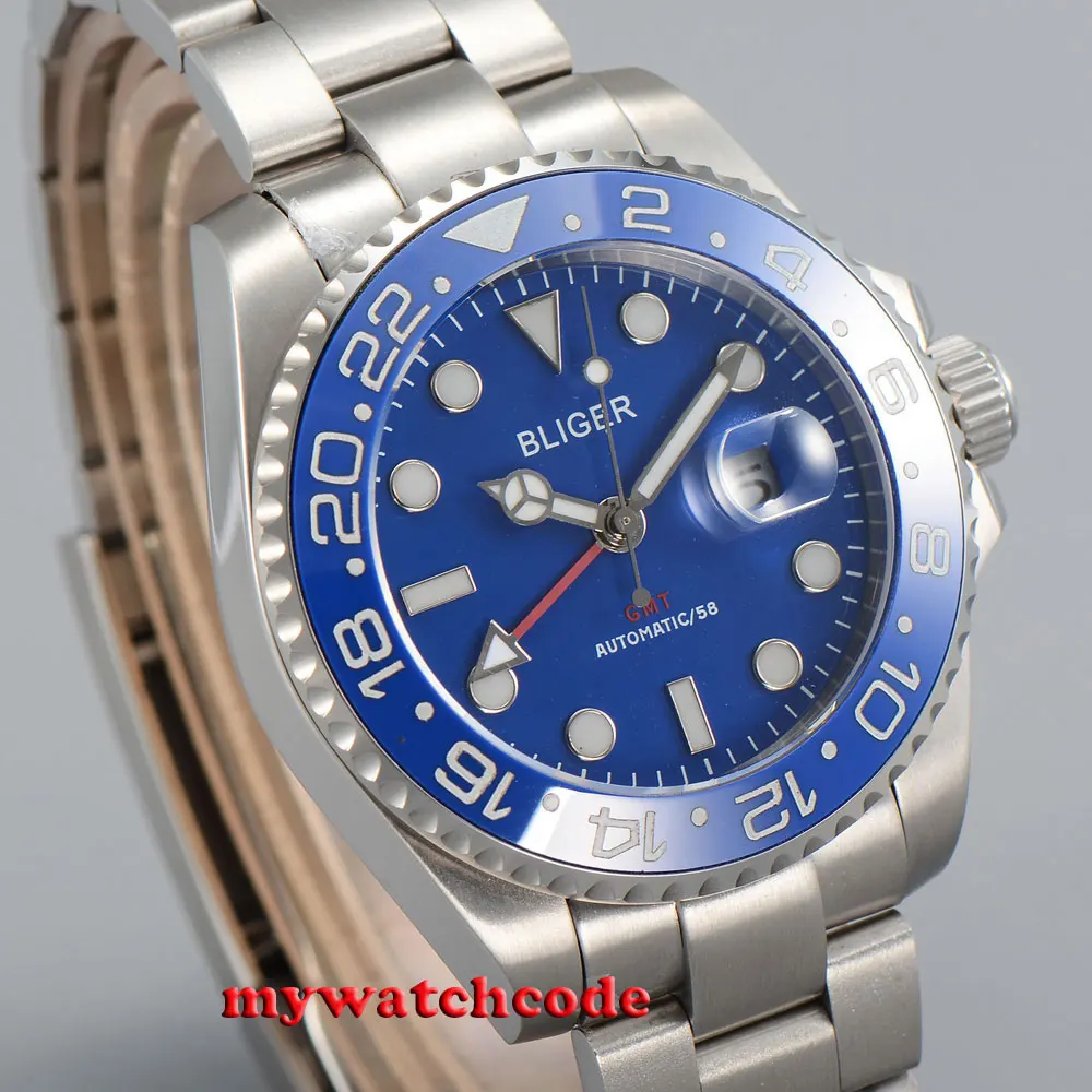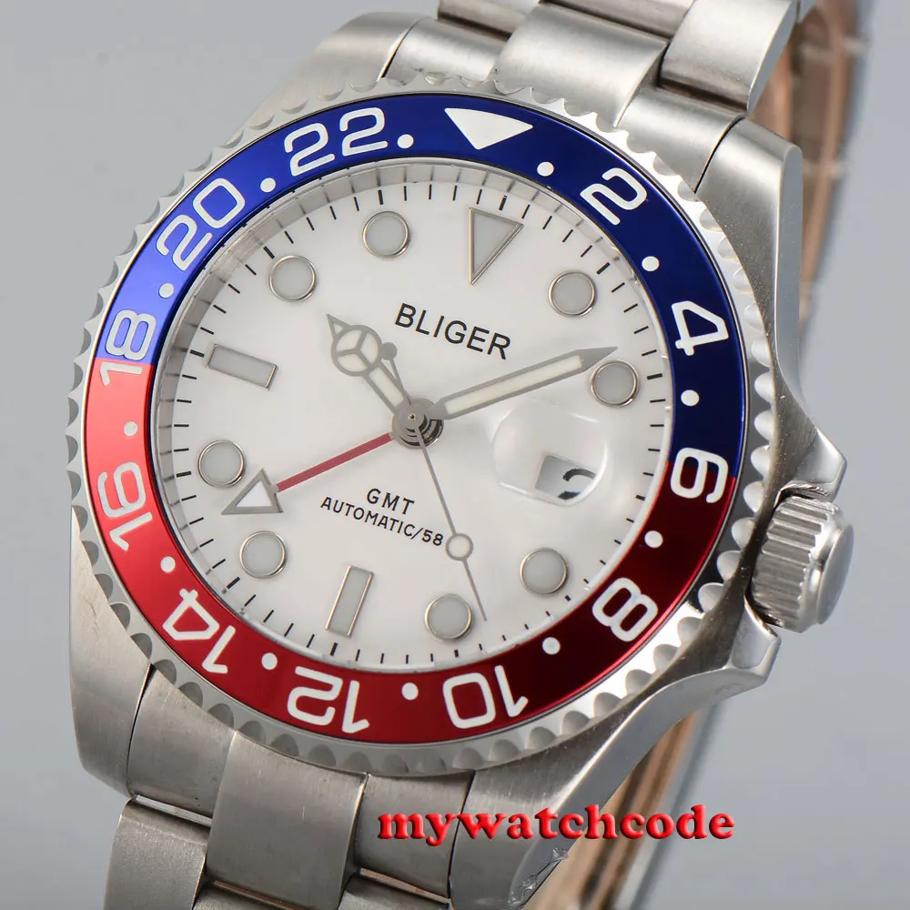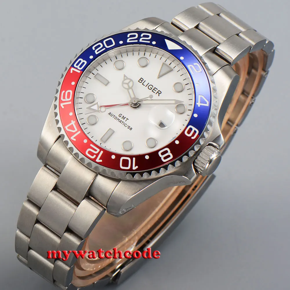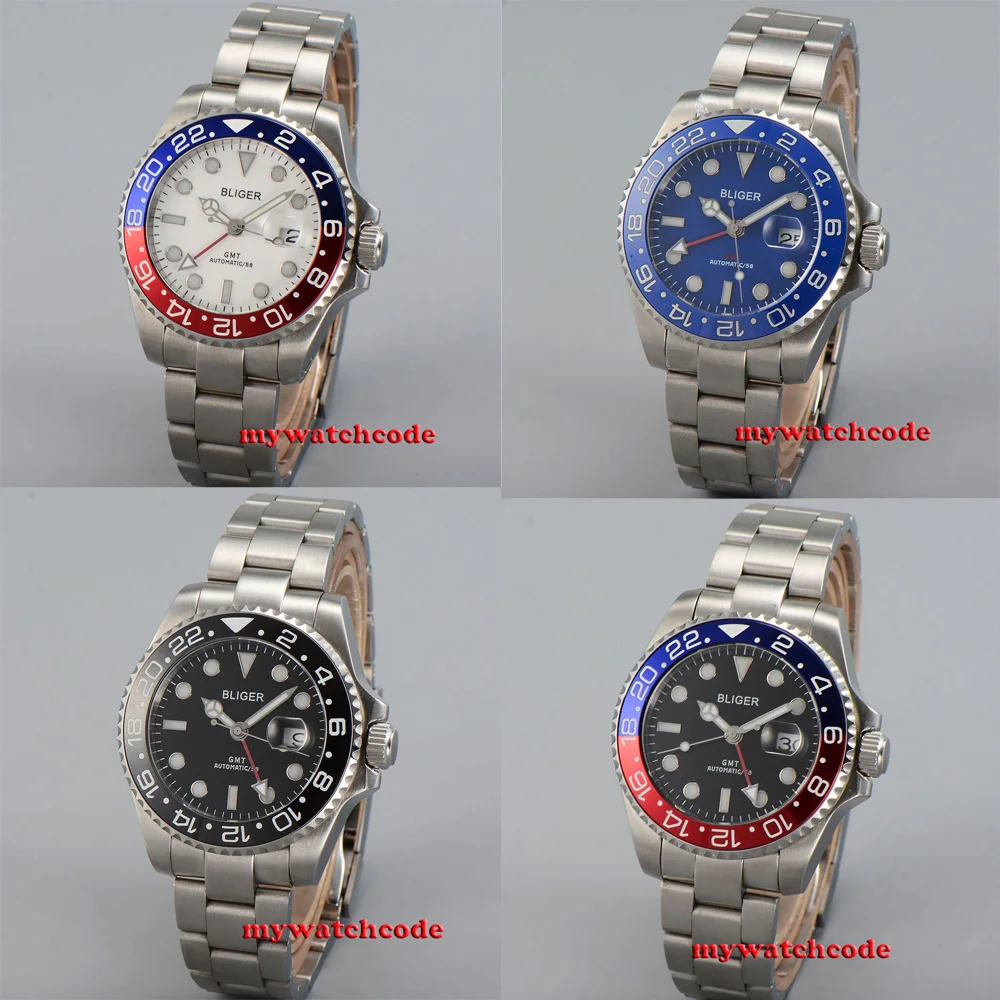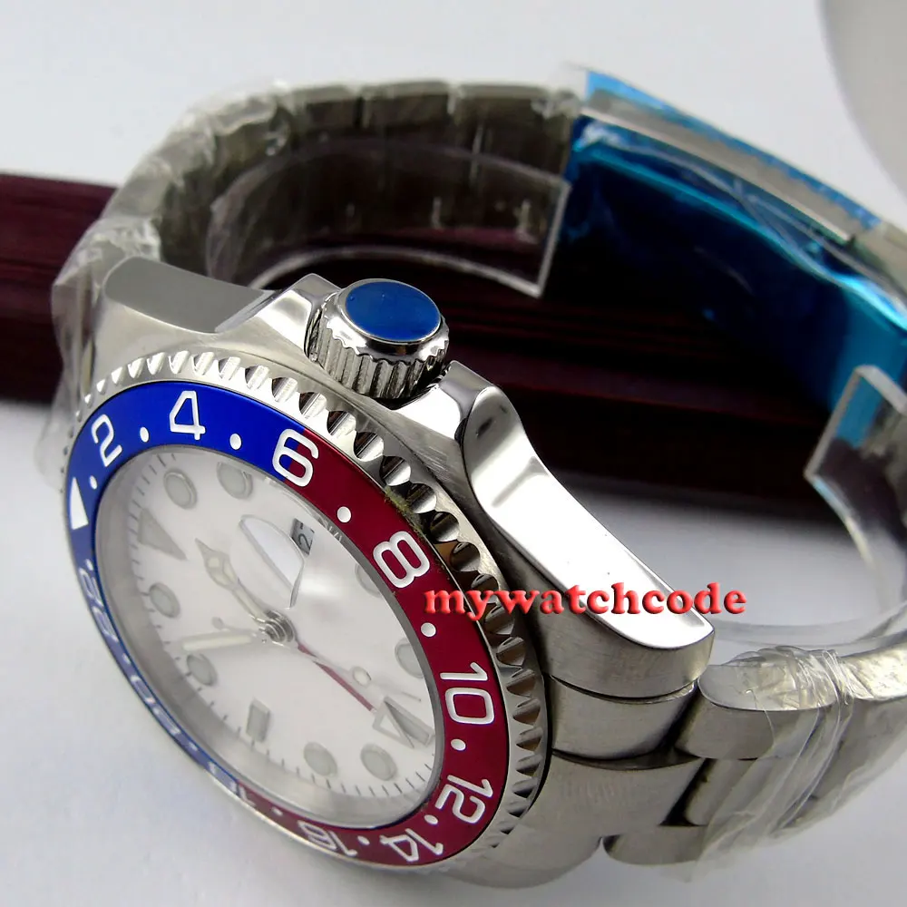 43 мм черный циферблат механические Автоматические Мужские часы красный GMT ручной сапфировый кристалл светящиеся отметки Oyster браслет