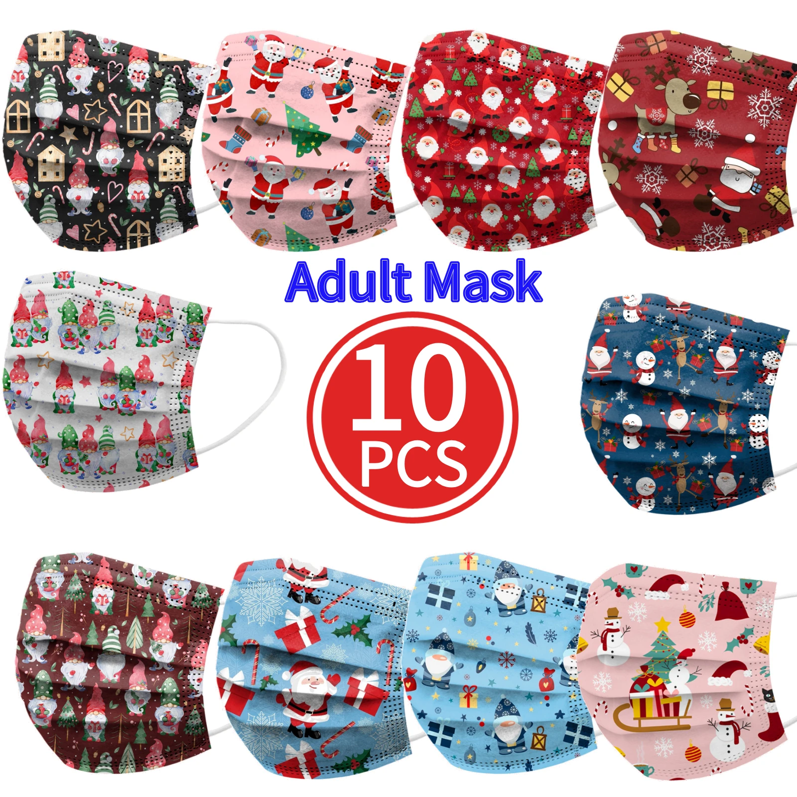 10 шт. Рождественская защитная маска для лица для взрослых, одноразовая маска для лица для Хэллоуина, косплея, рождественские украшения 2021 с новым годом