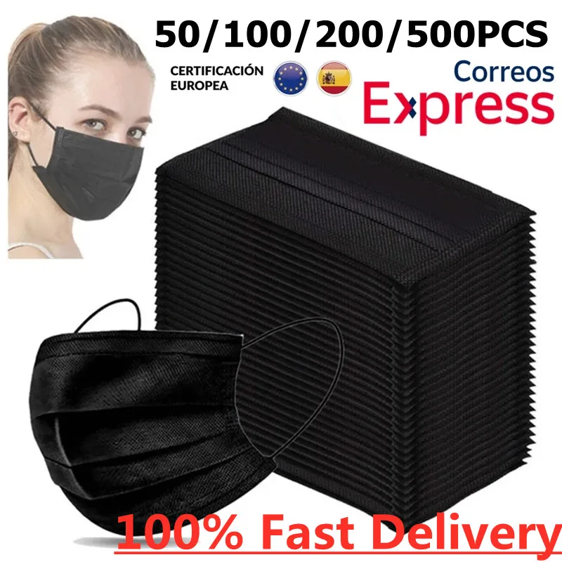10-500 шт., одноразовые черные маски для лица, 3 слоя