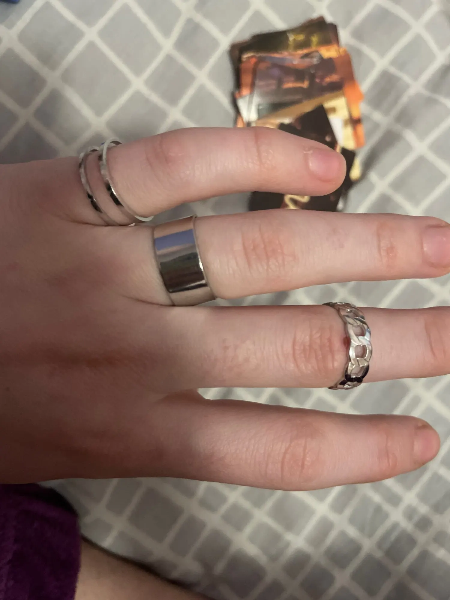 Всі колечка як на фото. На пальцях виглядають гарно. На мій 16 р