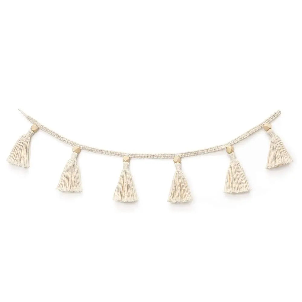 Плетеная макраме кисточки хлопковая гирлянда с деревянными бусинами...