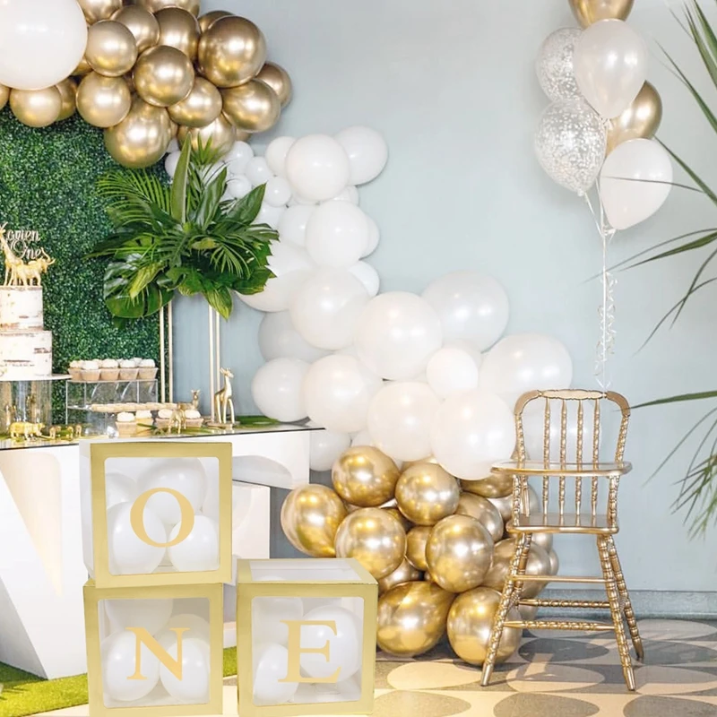 Золотая воздушная коробка, прозрачная коробка для первого дня рожде...