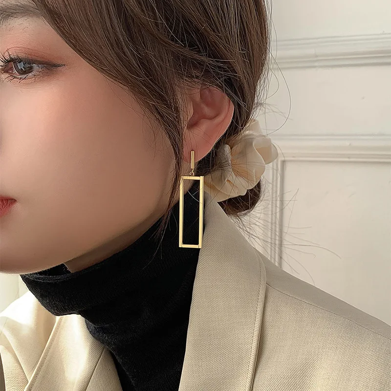 серьги 2021 тренд бижутерия для женщин серьги висячие MEYRROYU 316L модные ювелирные изделия из нержавеющей стали романтические геометрические прямоугольные висячие серьги 2021 модные для женщин новый вечерние
