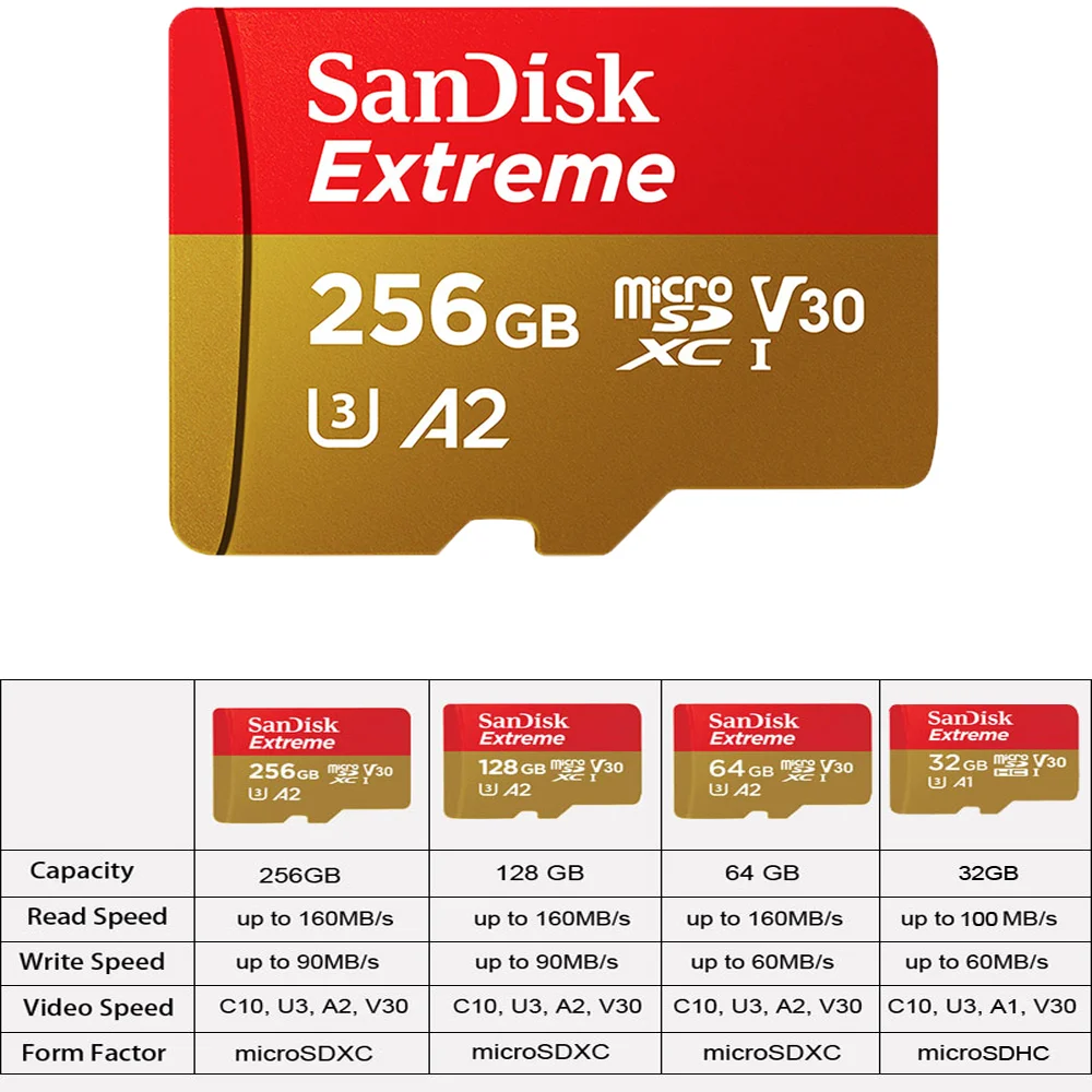 Карта памяти SanDisk SD, карта памяти 32 Гб 128 ГБ 256 ГБ Extreme Pro Micro 128 Гб Class 10 U 3