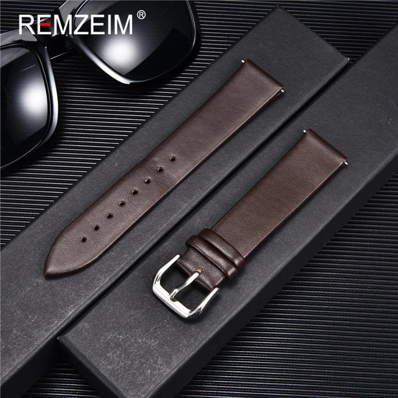 Ремешок для часов REMZEIM из телячьей кожи, сверхтонкий Гладкий мяг...