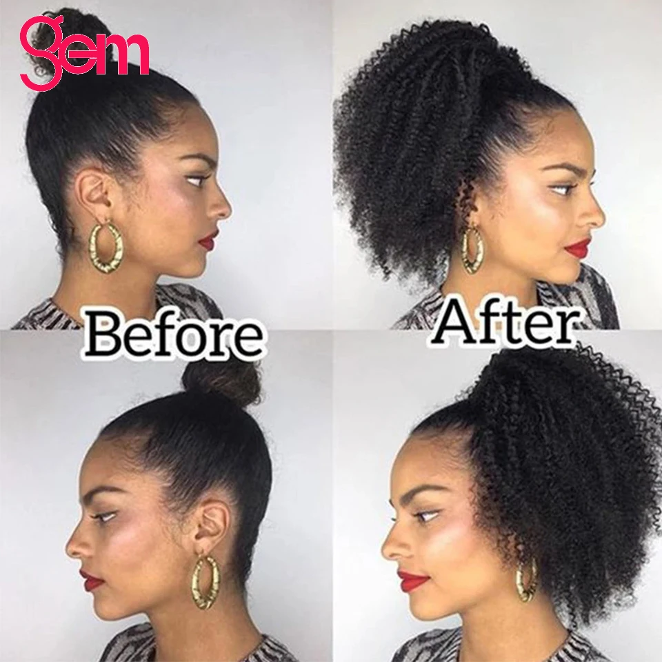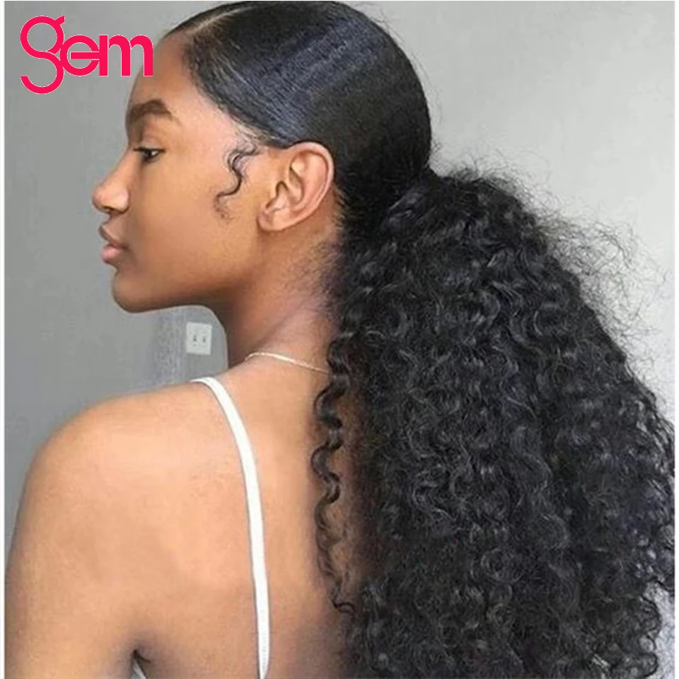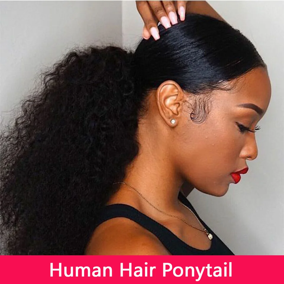 Кудрявый кудрявый хвост Monglian хвост человеческие волосы конский хвост для черных женщин афро кудрявые удлинители конского хвоста