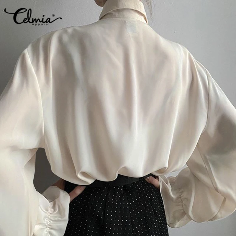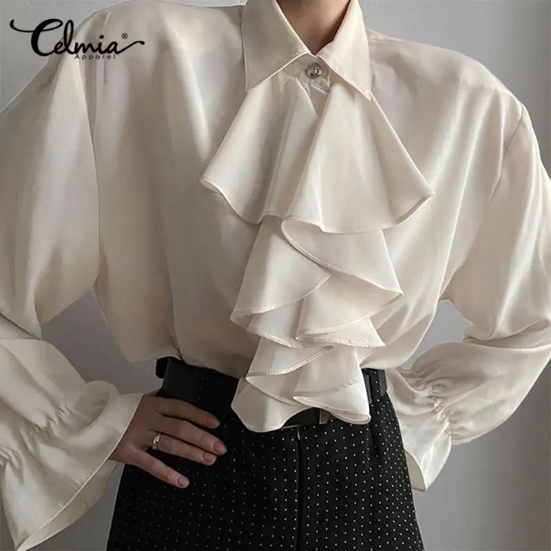 Осенние блузки Celmia с длинным рукавом 2022, модные женские топы с оборками, элегантные рубашки на пуговицах, повседневные свободные однотонные женские блузки для вечеринок